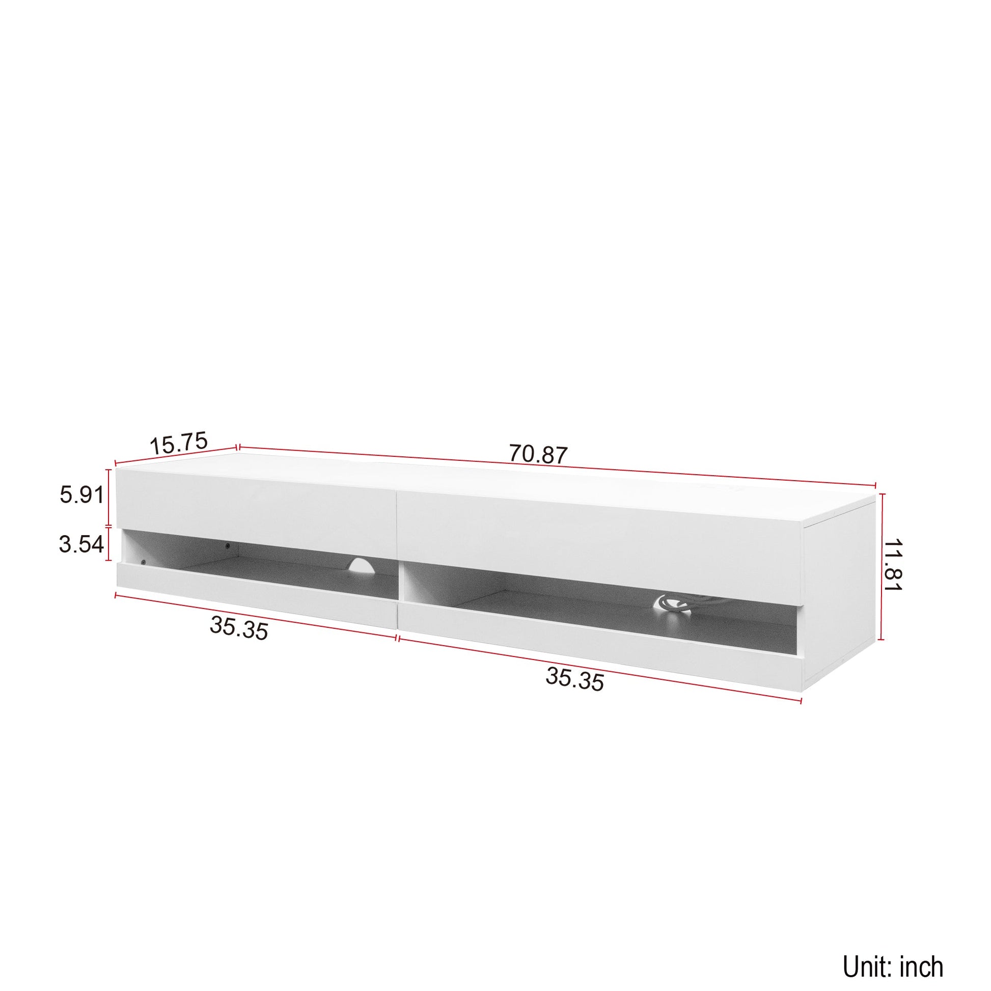 - [FASHION WHITE DESIGN]: The stylish white design combined with this floating TV shelf brings you a stylish atmosphere, which can easily complement any style of room or furniture. Coupled with a controllable With LED lights, 16 kinds of monochrome and 4 kinds of color change, it will add a touch of elegance and vitality to your bedroom, living room, media room, and office.