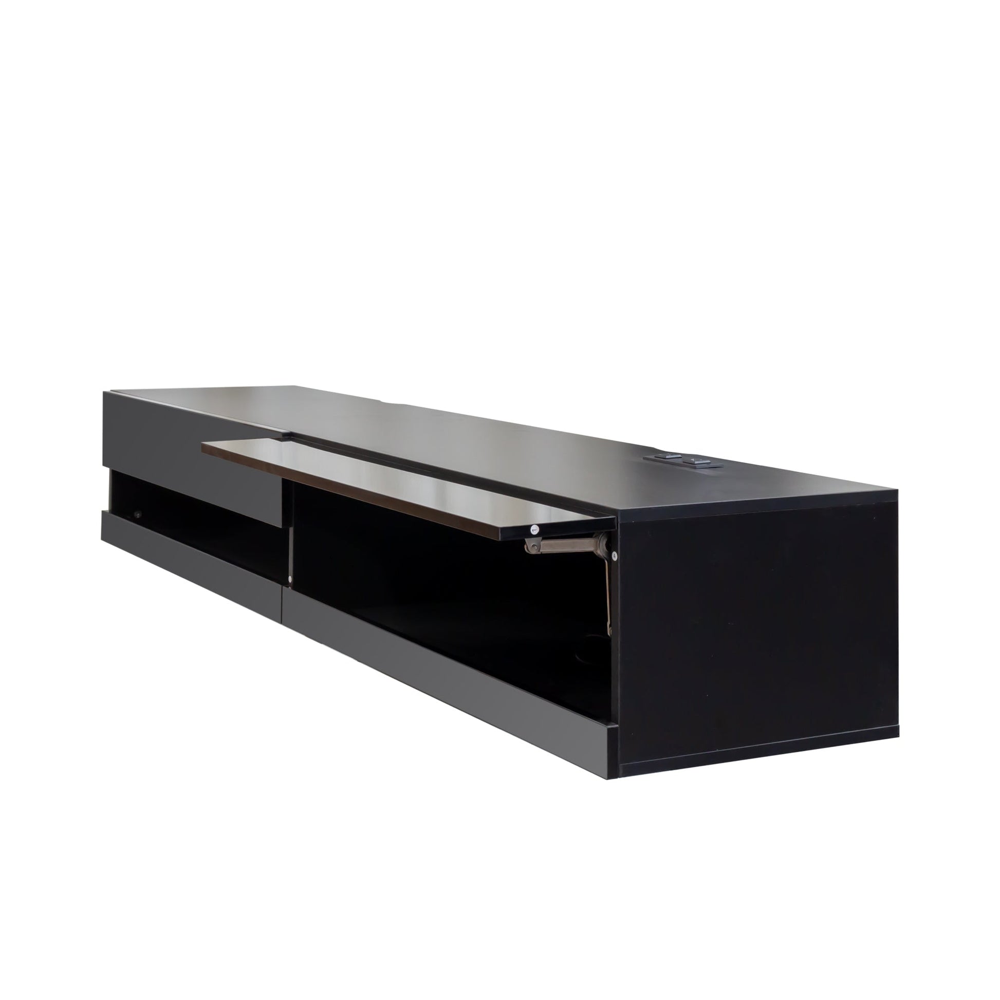 180 Wall Mounted Floating 80' TV Stand with 20 Color LEDs and Charging Station