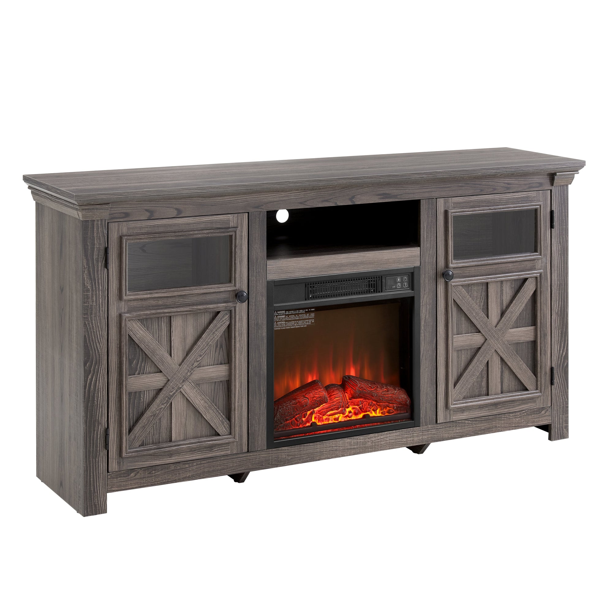 2 Doors Cabinet Farmhouse Cabinet, Farmhouse TV Stand Barn Design,Farmhouse TV Media Stand, Large Barn Inspired Home Entertainment Console with 18' fireplace insert,GREY, 60.23'W*15.35'D*31.7'H