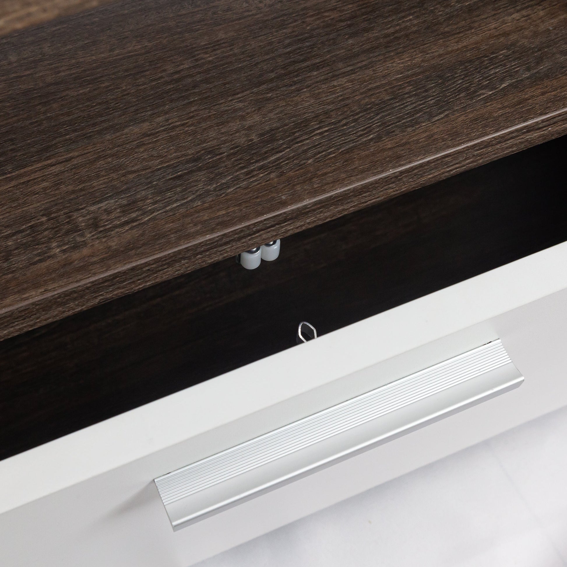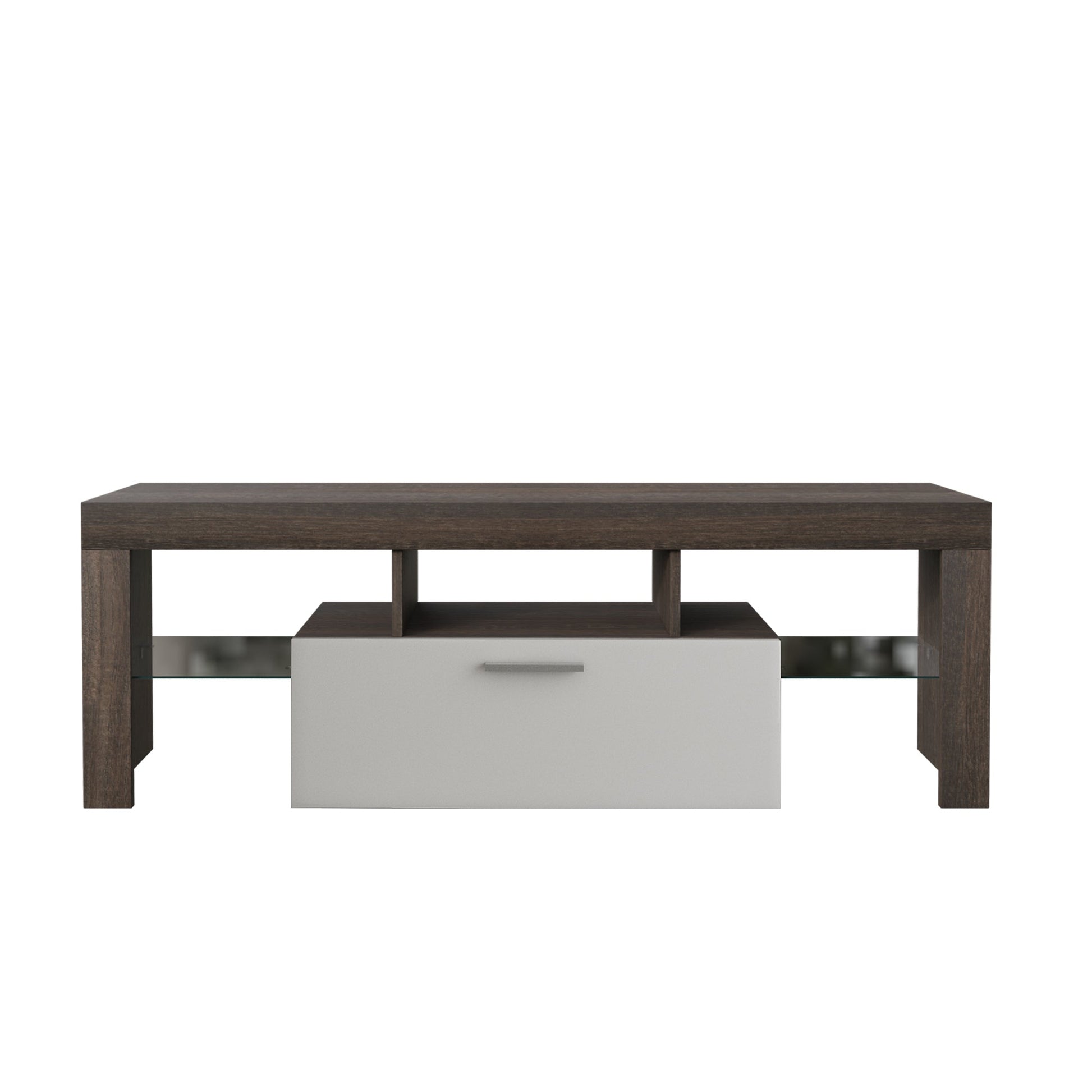 20 minutes quick assembly brown simple modern TV stand with the toughened glass shelf Floor cabinet Floor TV wall cabinet Brown + whiteTV bracket with LED Color Changing Lights for Living Room