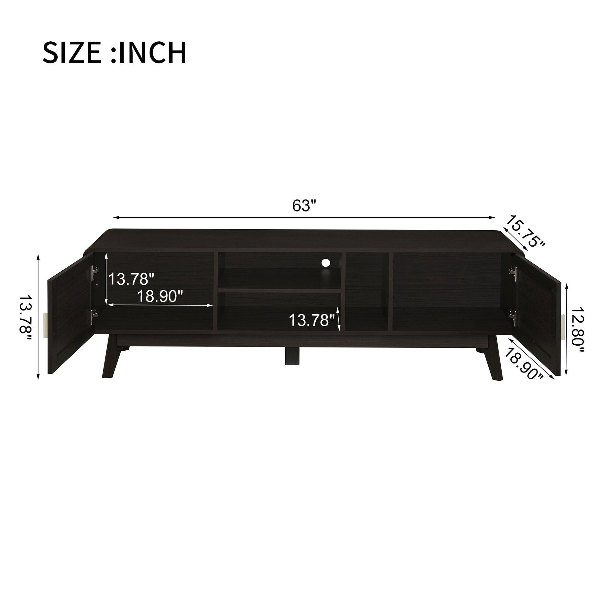 - [Spacious Storage Space]It features a large desktop, two door cabinets, and three open compartment spaces, providing ample space for your media devices and daily necessities. This helps keep your living room organized, neat and tidy. The adjustable hinge design of the door ensures that the door closes and opens easily.