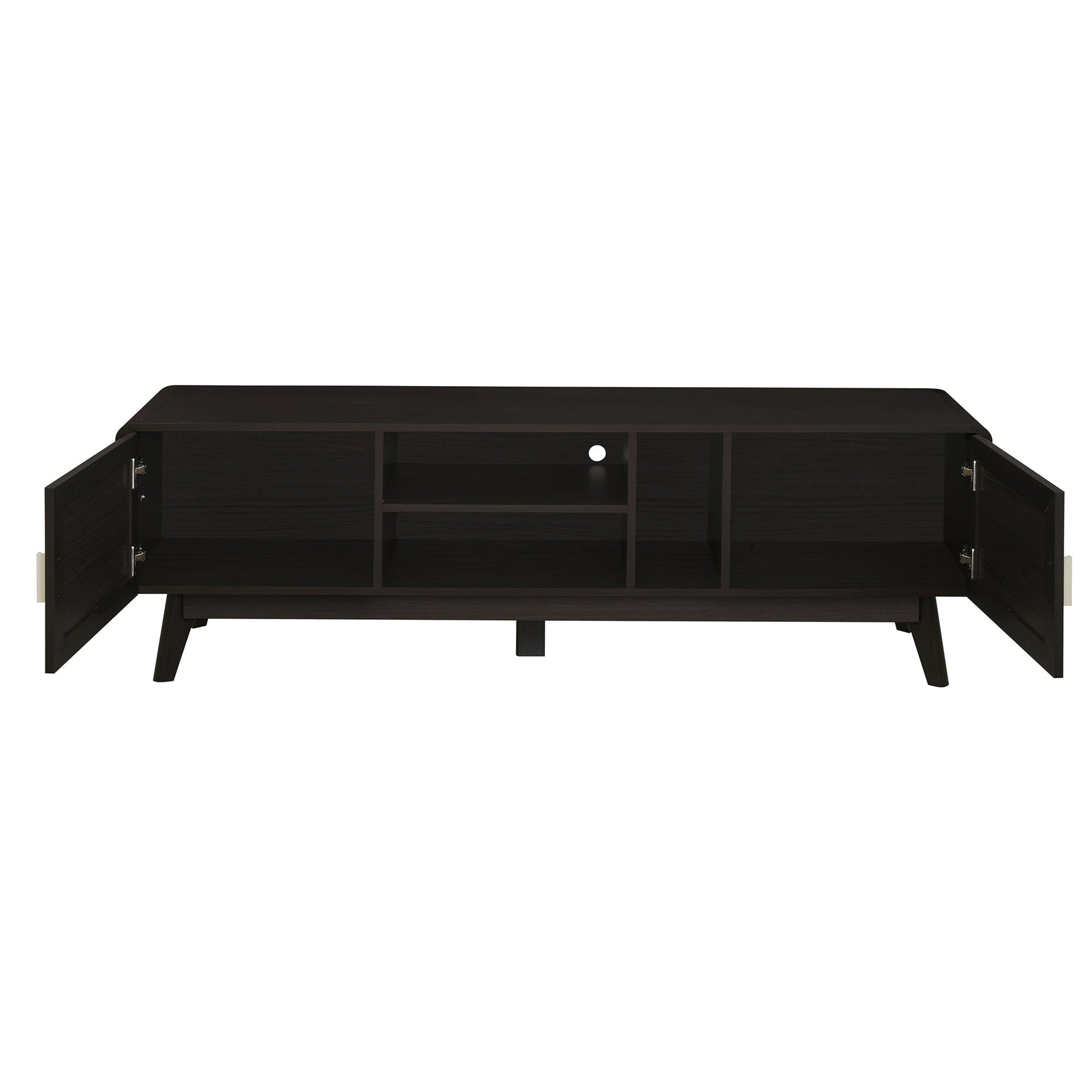 63'' Dark Rattan TV Stand with 2 Storage Cabinets for 65 Inch TV, Entertainment Center with Solid Wood Legs, Media Console Table for Living Room, Bedroom