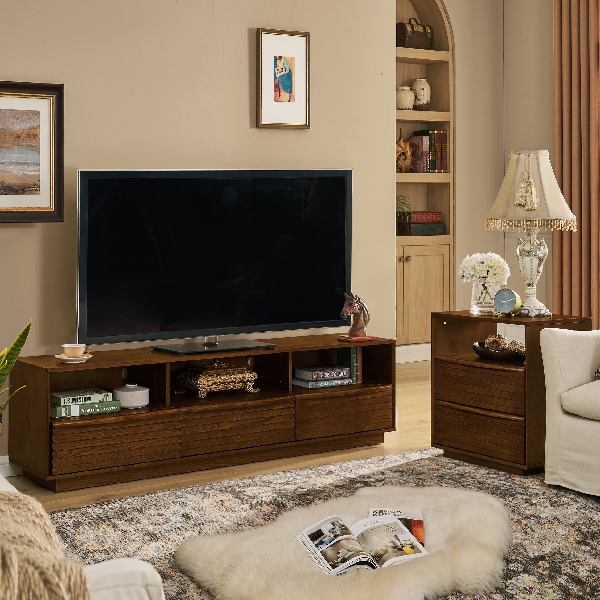 - [ Spacious and Flexible Storage Space ] - Featuring 3 open fixed shelves and 3 thick drawers that can be flexibly divided into different storage and display areas, this TV stand can be adapted to meet your specific storage needs, making it ideal for storing everything from decorative items and glassware to books and multimedia equipment.