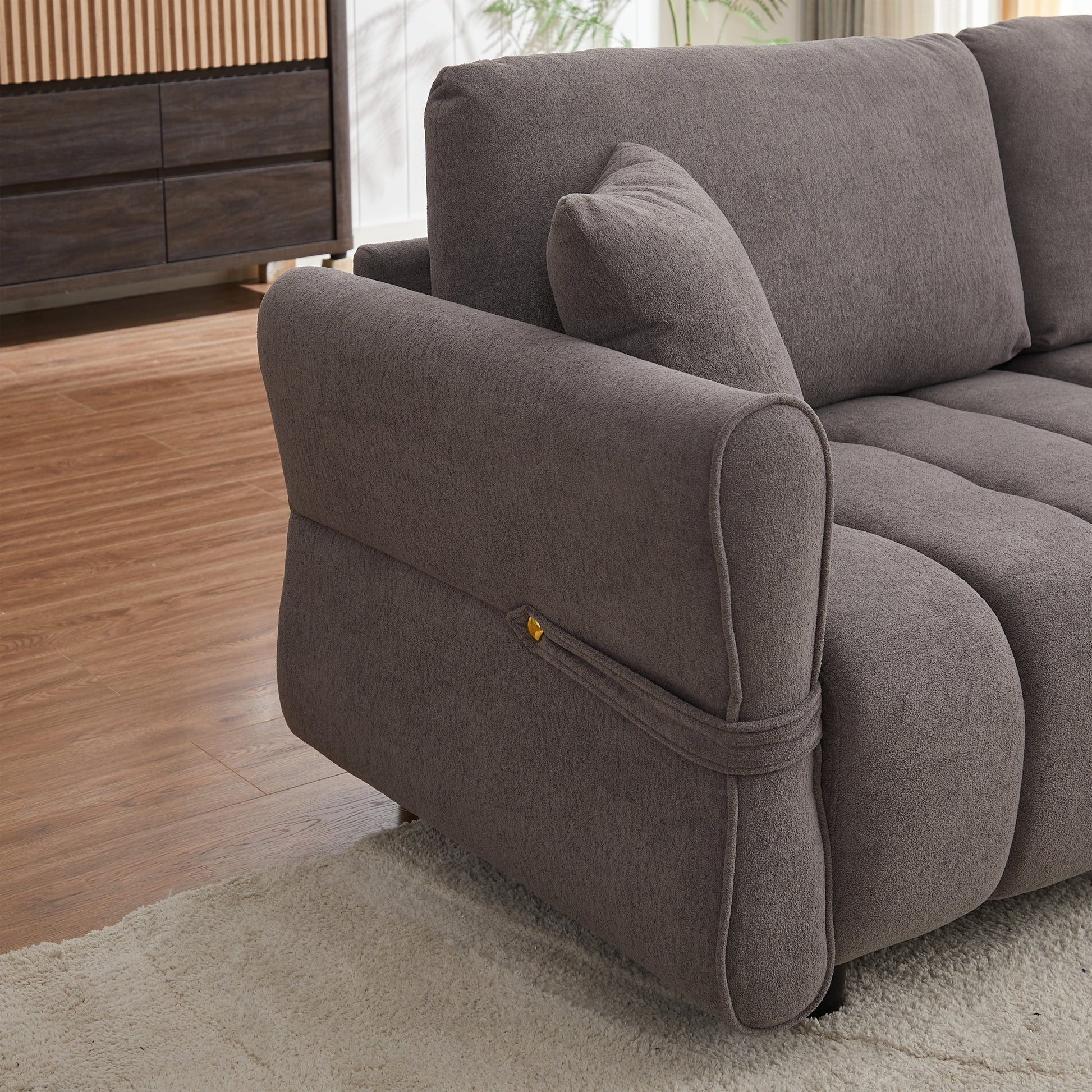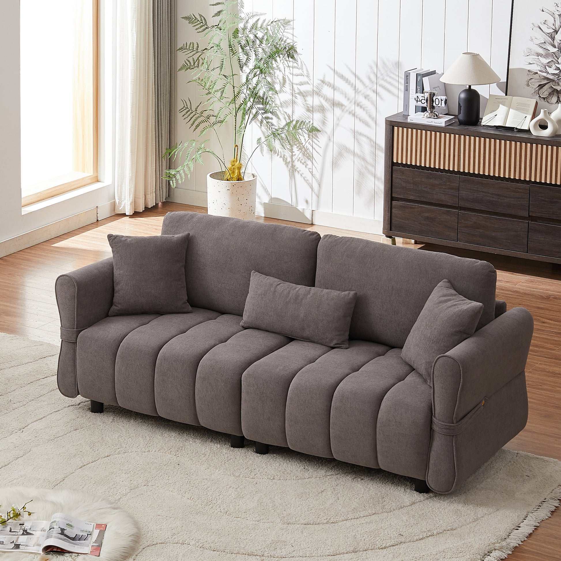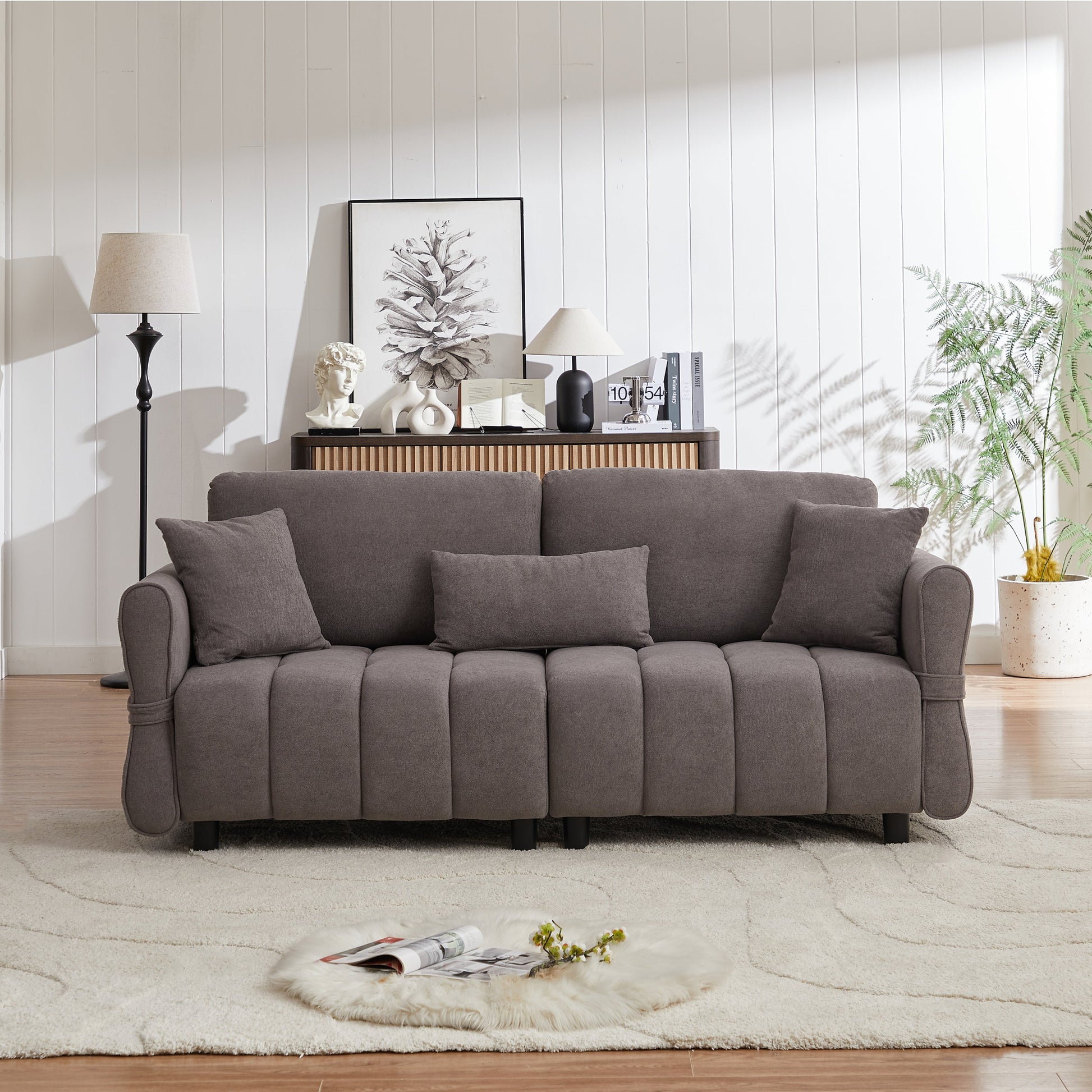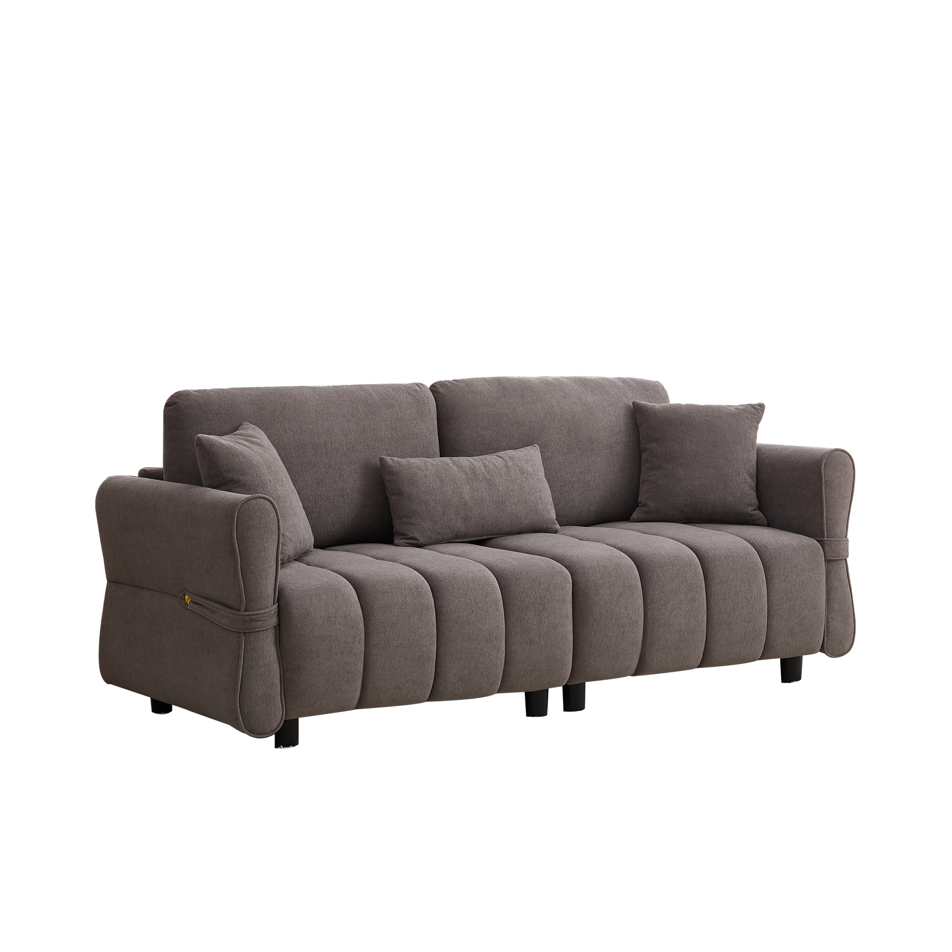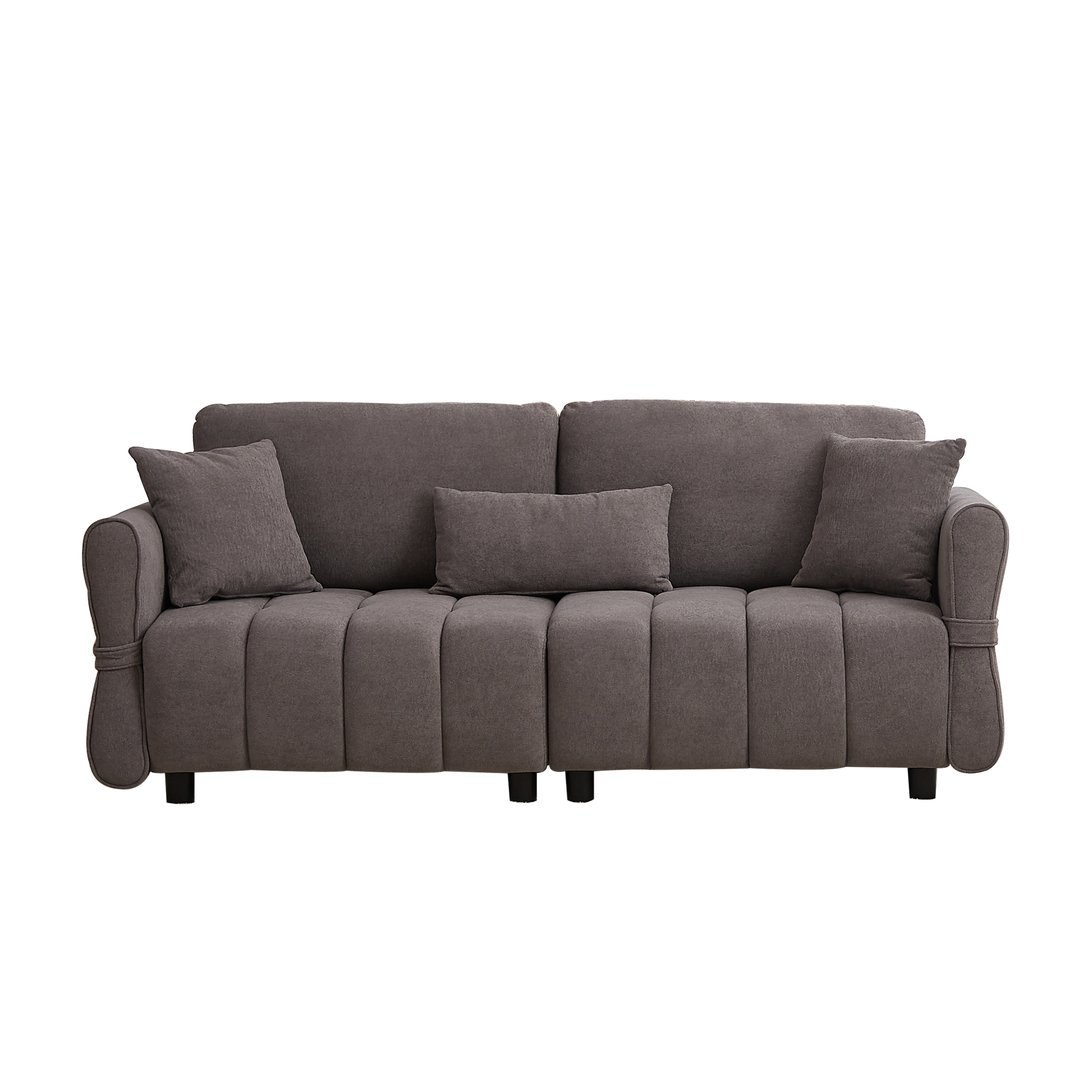 80''Premium chenille fabric sofa with 2 cushions and 1 lumbar pillow Armrest strap design,,upholstered 3-seater sofa for living rooms, bedrooms,apartments and offices Grey