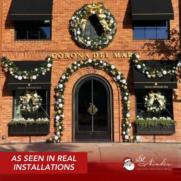Elevate your holiday celebrations with our predecorated Green Garland featuring elegant Gold and Silver Ornaments and Warm White Lights. The rich green foliage provides a lush and vibrant backdrop for the shimmering gold ornaments, while the warm white lights cast a cozy glow, creating a magical ambiance. Use it to adorn your staircase, windows, or any other area in need of a festive touch.