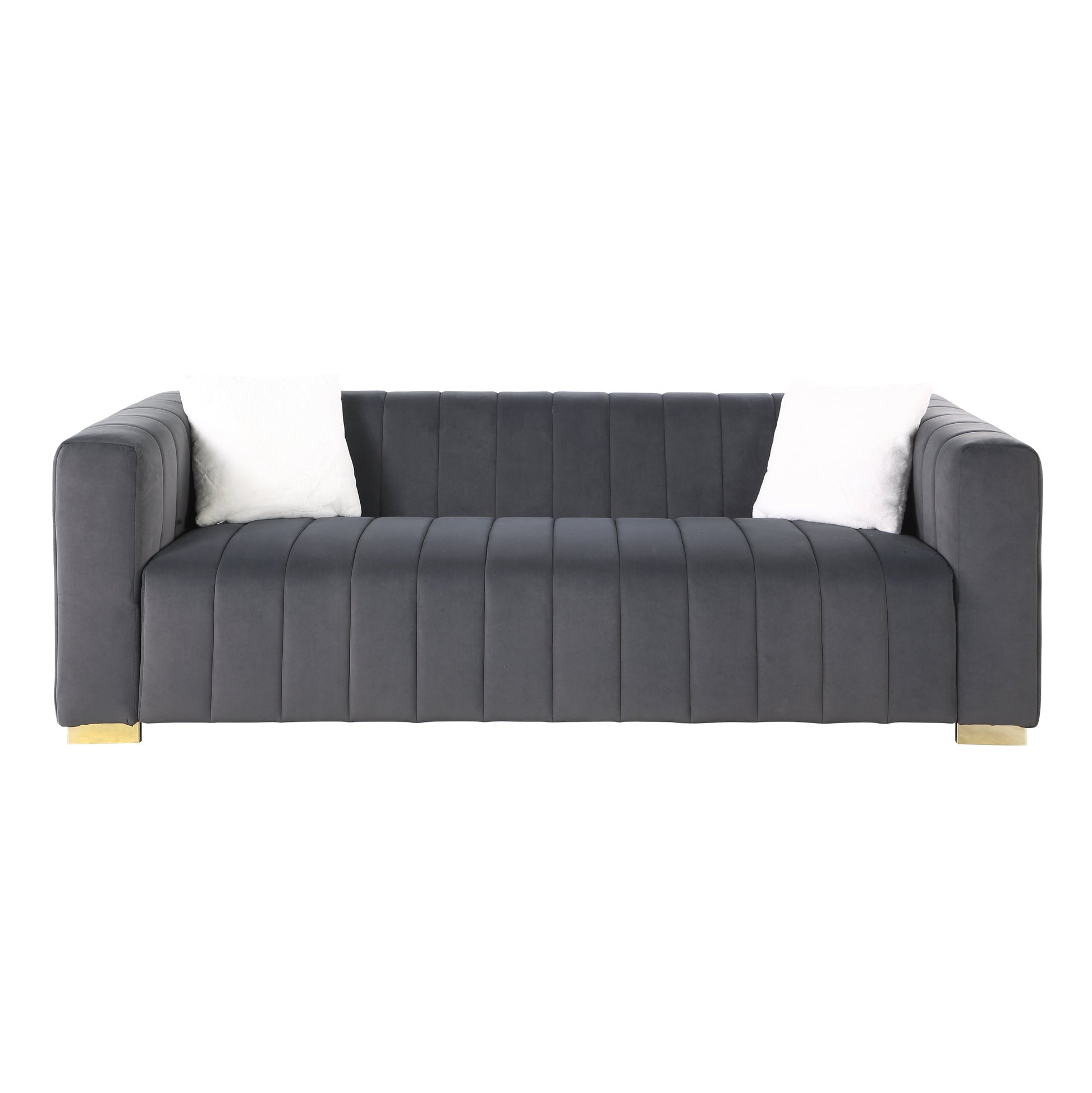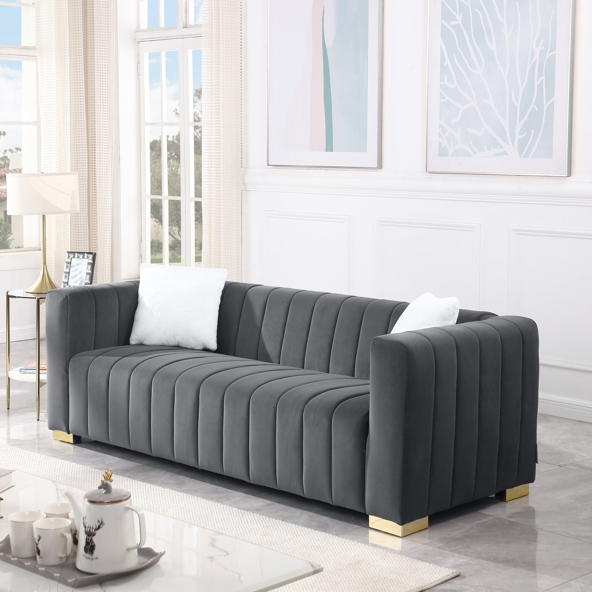 A modern channel sofa take on a traditional Chesterfield,Grey color,3 seater