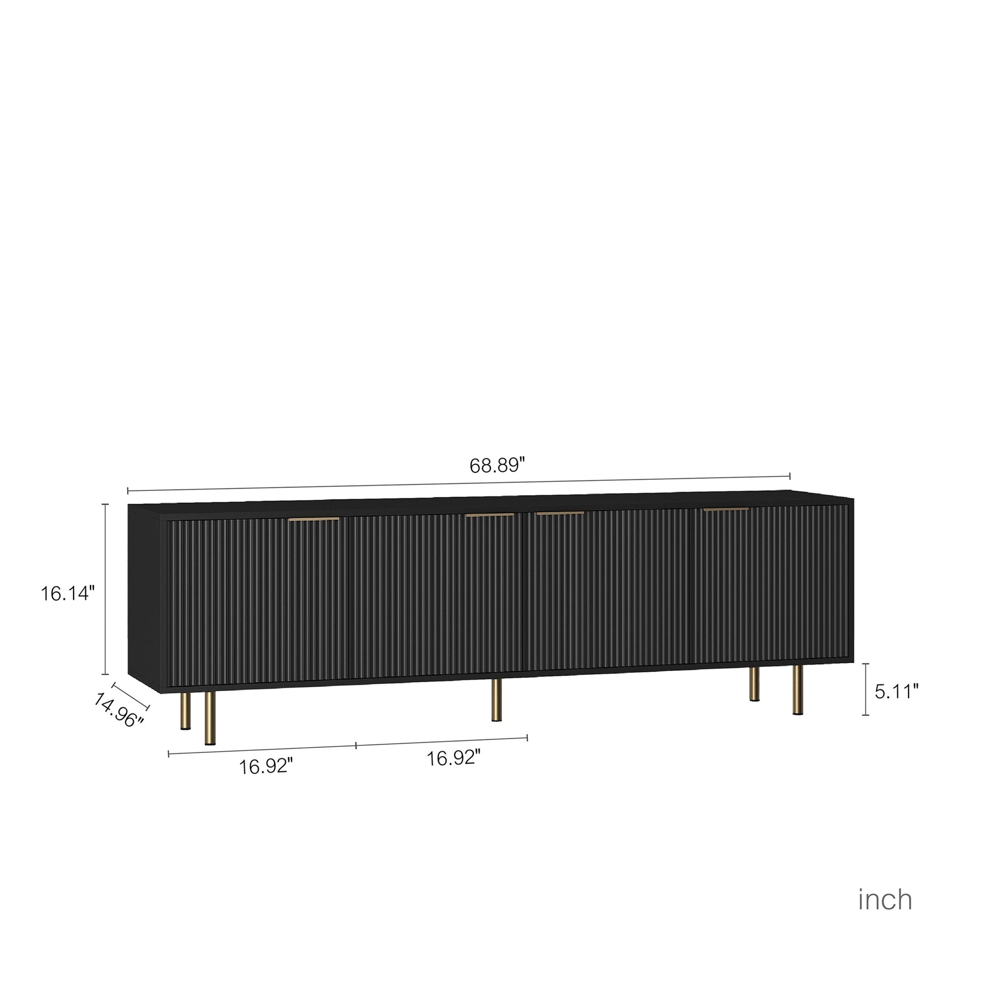 Black Modern TV Stand Fluted 68' , Entertainment Center with Storage Doors, TV Console Media Cabinet, for 55+ Inch TV, Living Room