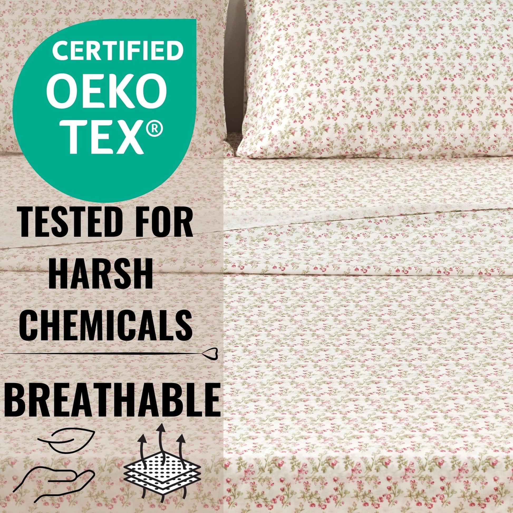 - Romantic Dainty Floral Roses Design: This poplin cotton sheet set features a charming coquette floral pattern in soft pastel hues, adding a touch of romance to your bedroom decor.