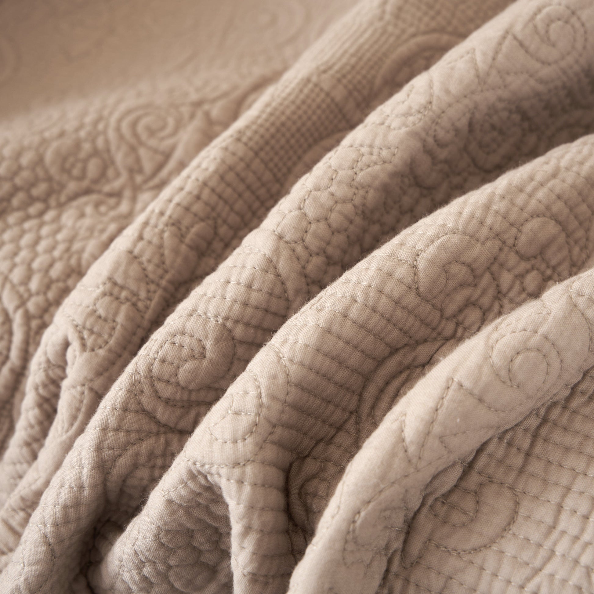 DaDa Bedding Elegant Fringed Cotton Quilted Throw Blanket - Luxurious Solid Soft Paisley Pattern, Cozy Lightweight Lap Throw, Perfect for Couch or Bed, Neutral Sandy Taupe Tan Beige, 50x60 Inches
