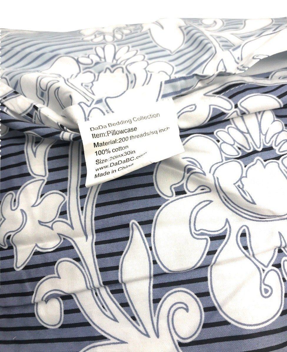 DaDa Bedding Navy Blue Floral Striped Fitted + Flat Sheets & Pillow Cases Set (FSFS8153)