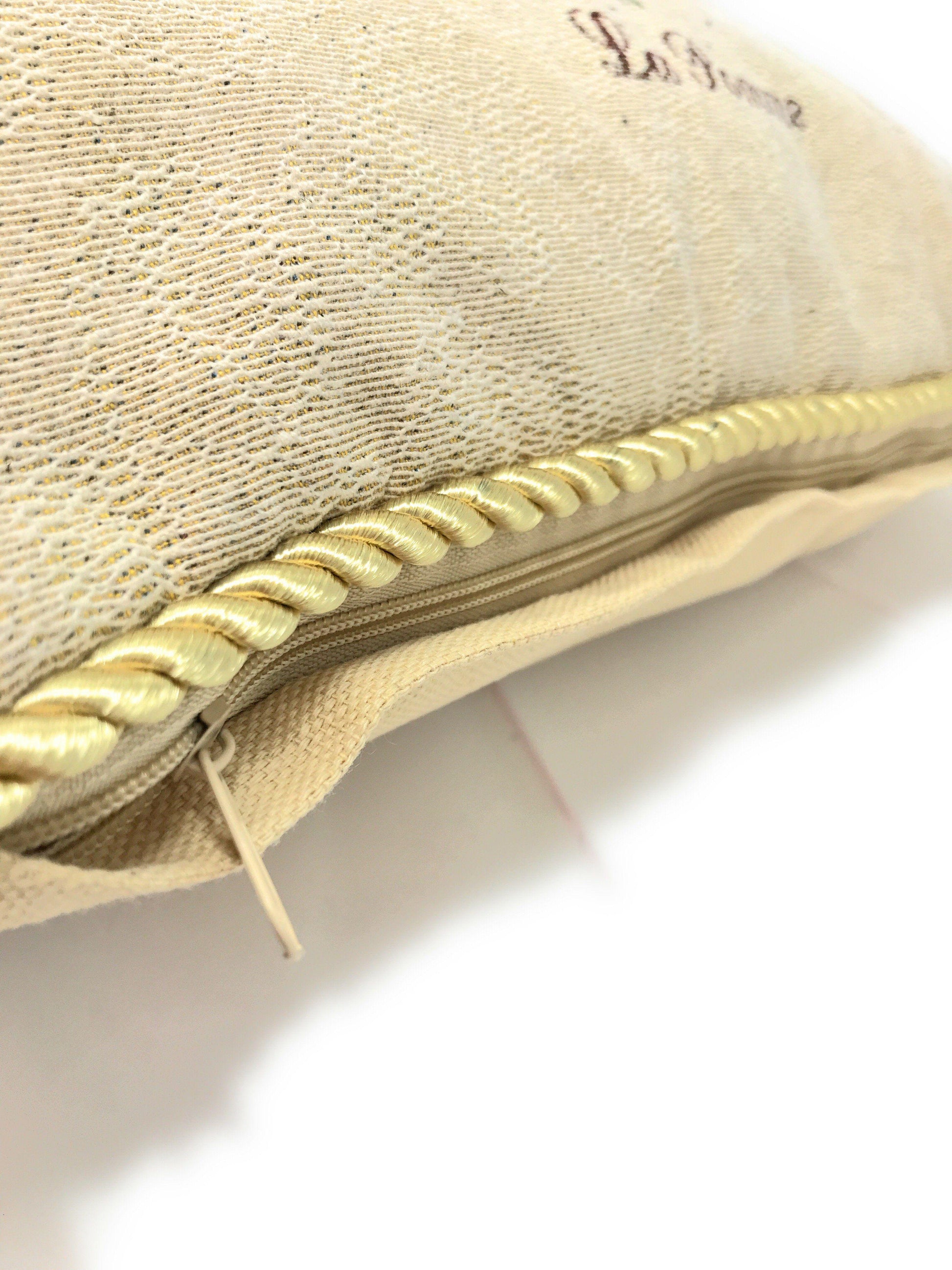 - Golden Rope Edge along Pillow Cover