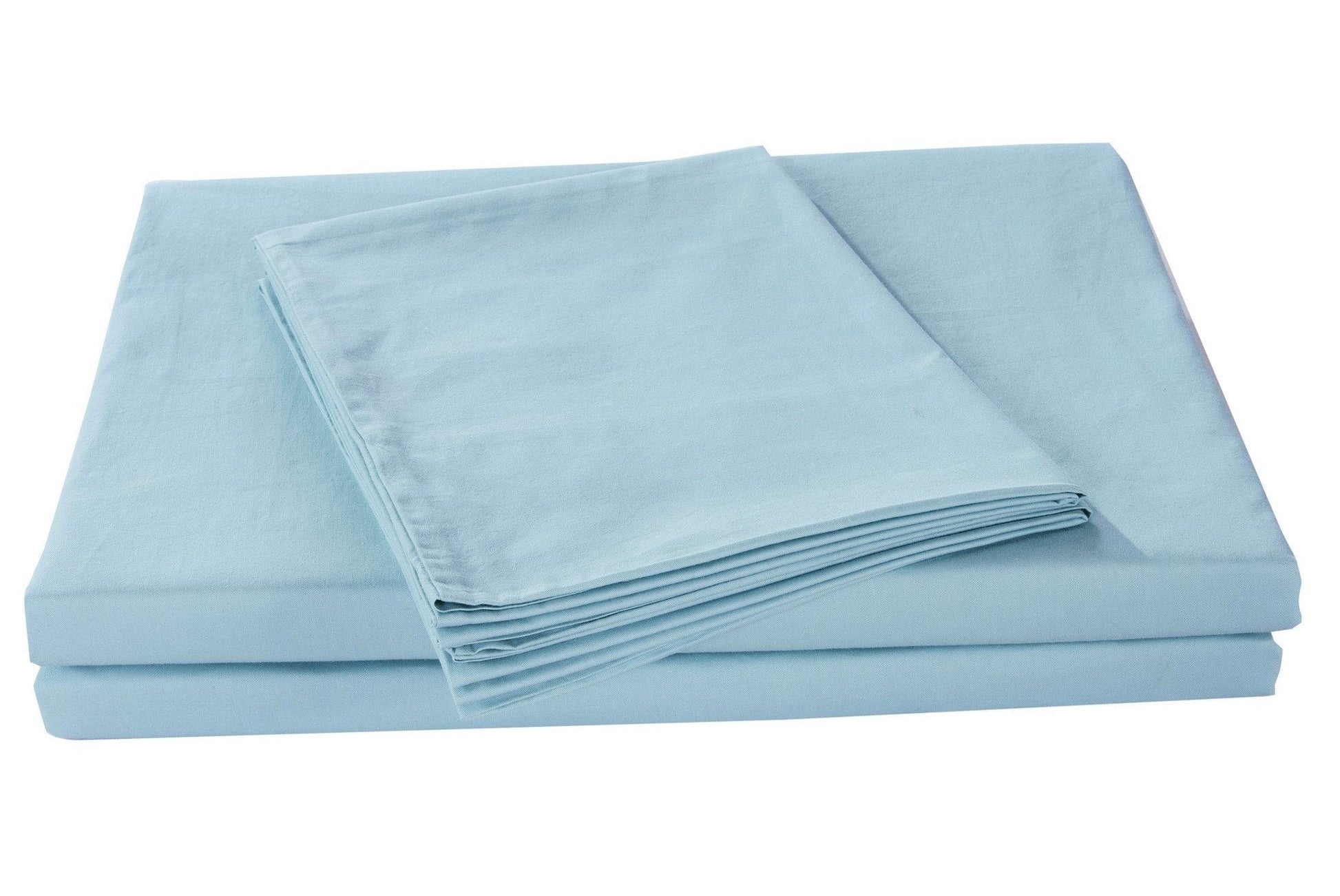 This fitted sheet set is a solid pastel sea-foam green baby blue shade with a 14” deep pocket.