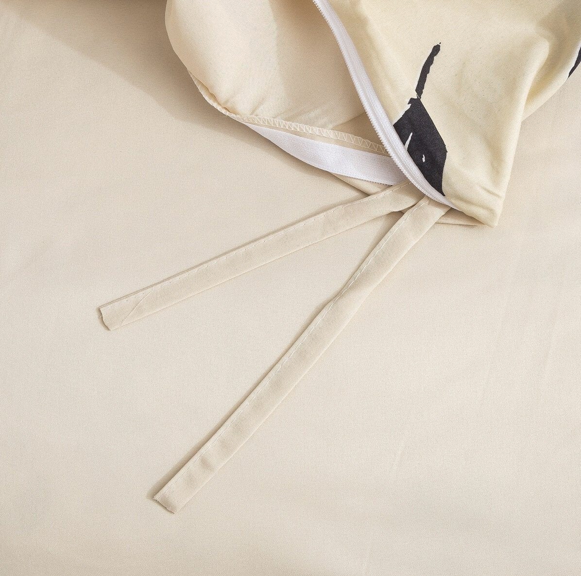 The Botanical Yellow Fleur Duvet Cover + Sheets Set is accented with dainty yellow floral patterns on a solid ivory tan background showing off a bright pop of color to your home décor.