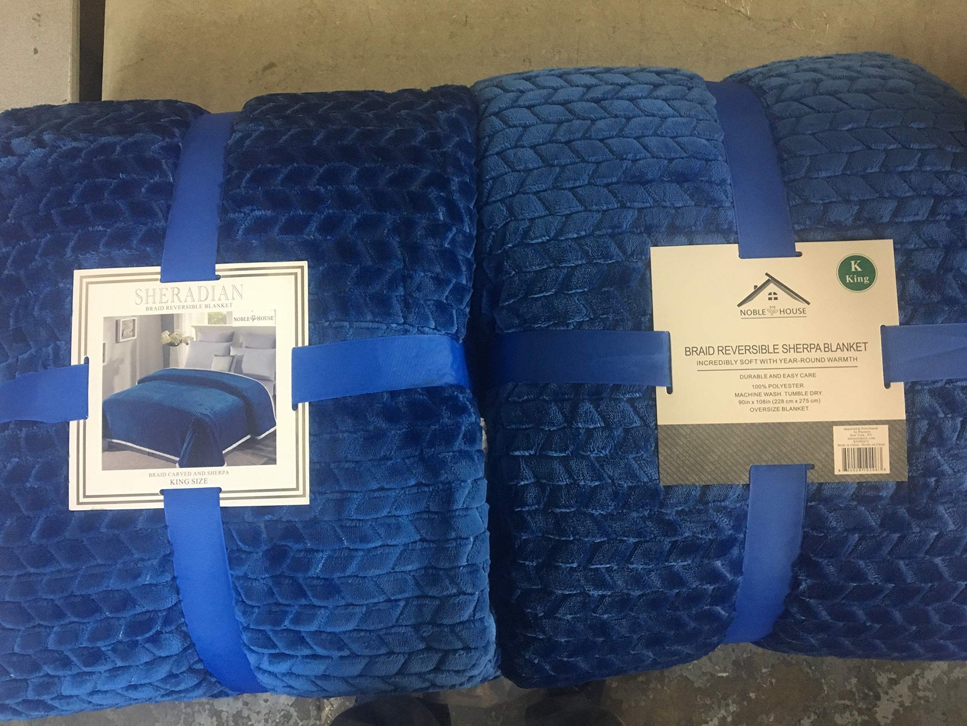 Cozy up at home with this extra soft and warm sherpa blanket! This Luxurious Reversible Designer Sherpa throw is great for your bed or even your couch! Measures: Queen - 90" x 90" & King - 108" x 90". Machine Washable.