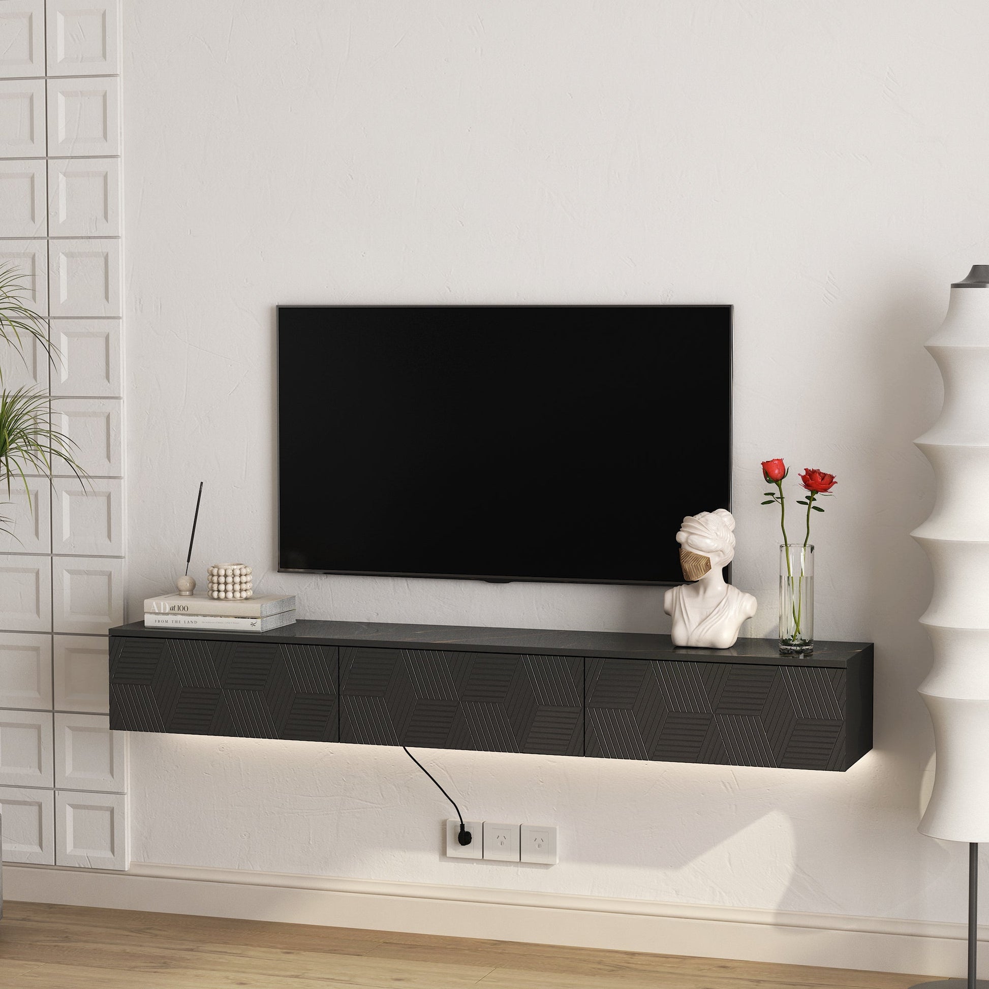 Floating TV Stand Wall Mounted with 16 Color LEDs,67' Modern TV Stand, Floating TV Cabinet Entertainment Center for 55 60 65 Inch TV,Black