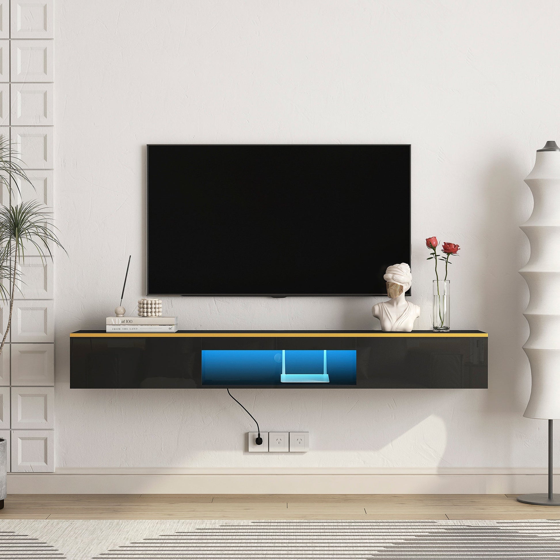Floating TV Stand Wall Mounted with 16 Color LEDs,69' Modern TV Stand, Floating TV Cabinet Entertainment Center for 55 60 65 Inch TV,Black