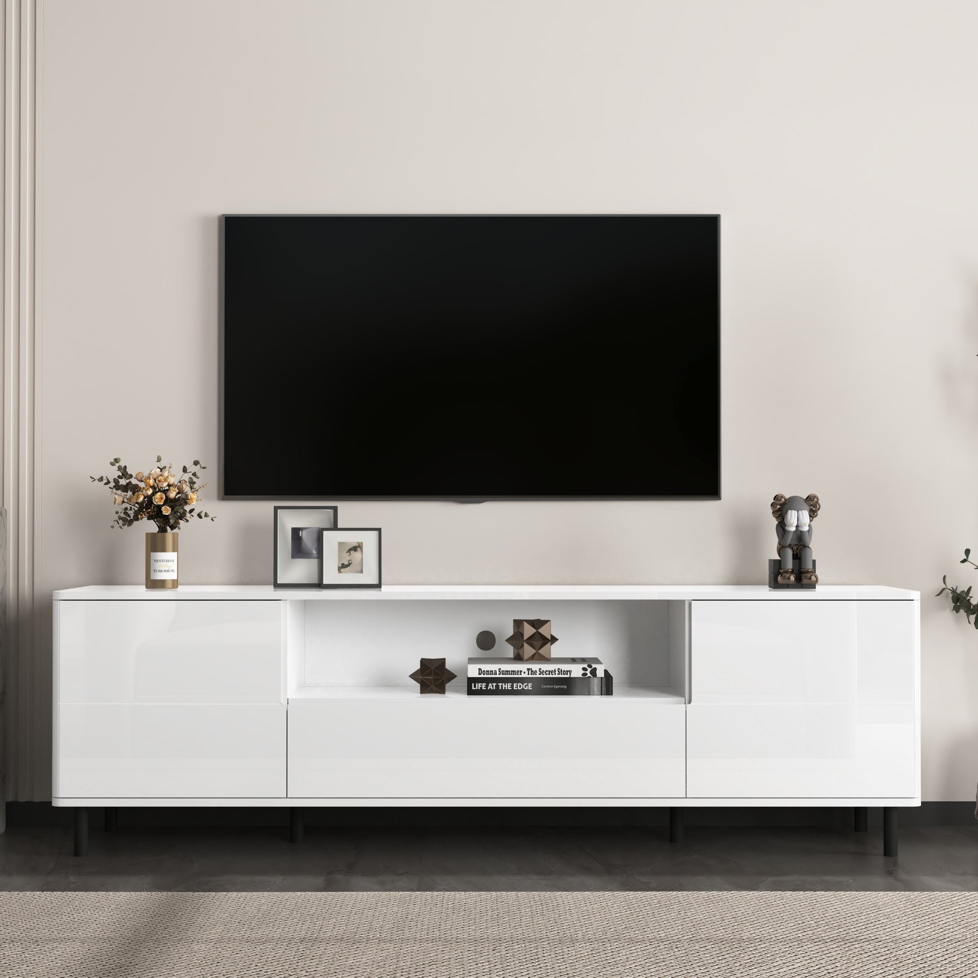 - Store More, Organize Better:The media console has 1 open compartments and 3 storage space, providing ample space to store your DVD player, gaming console, speakers, books, and more. It's a perfect entertainment center that keeps your items organized and within reach