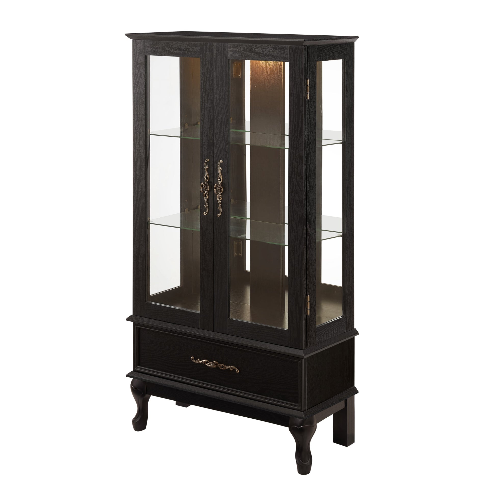 - Elegant Design: The Lighted Glass Curio Display Cabinet features a beautifully curved table leg design and large drawers with stylish metal handles, enhancing the aesthetic of any room while providing a sophisticated display solution.