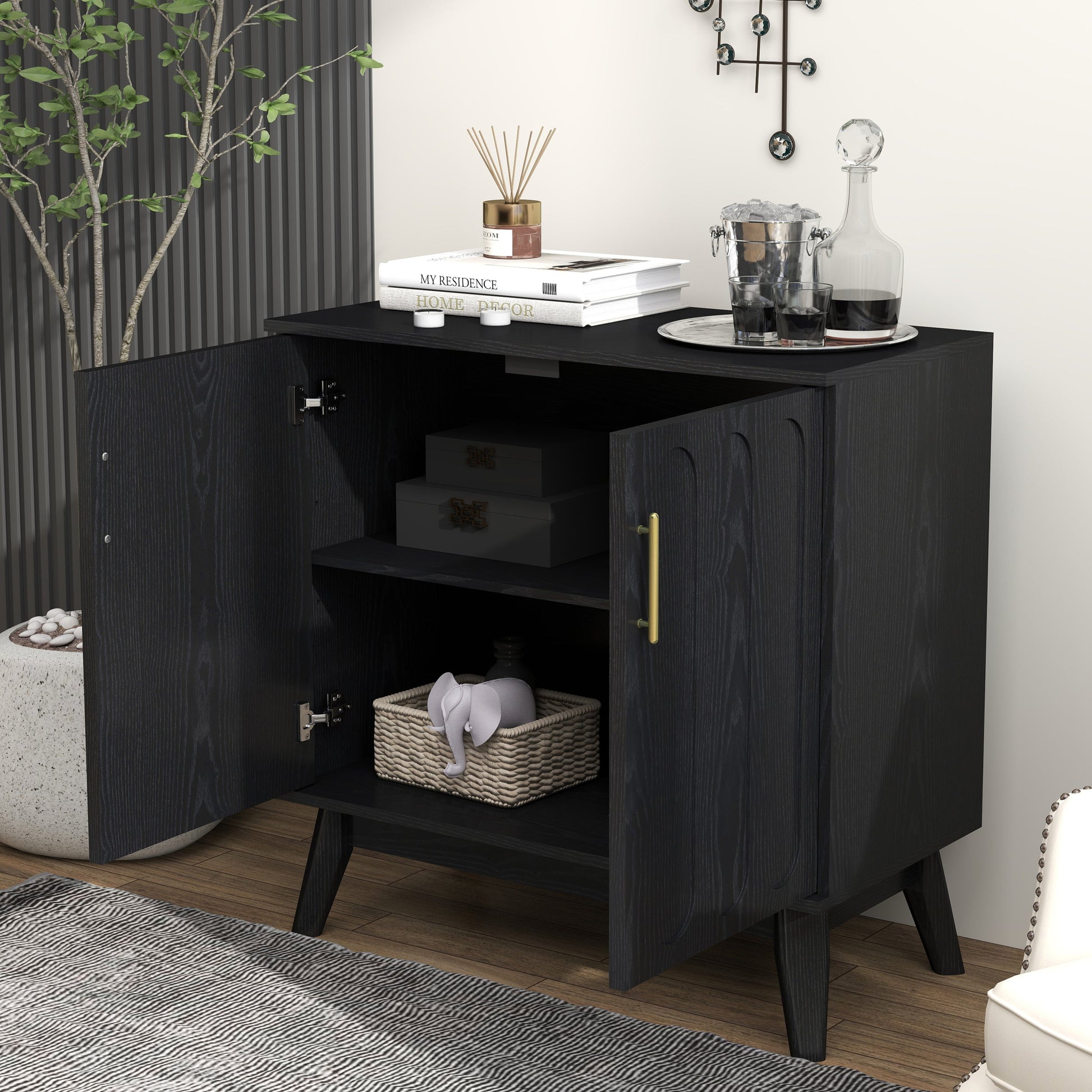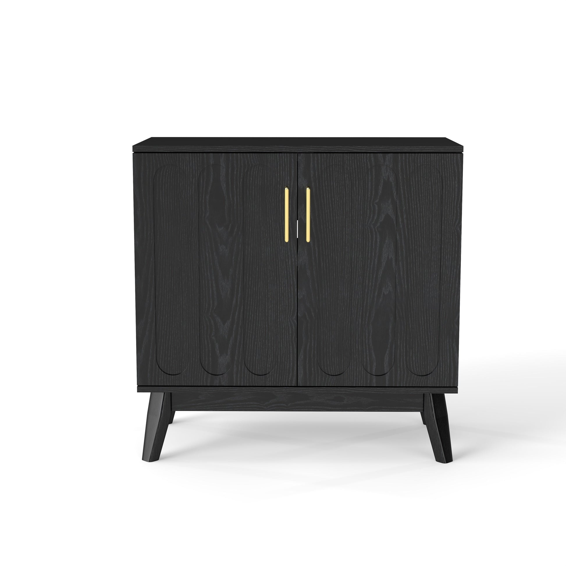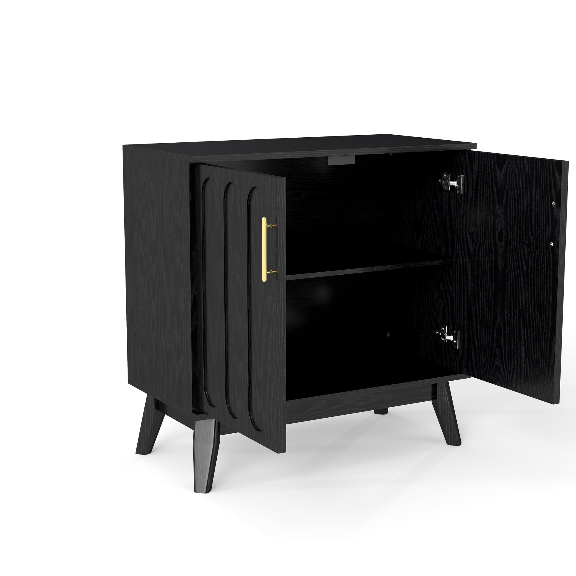 Mid Century Modern Fluted Sideboard Cabinet with Adjustable Shelves & Solid Wood Legs, Buffet Cabinet with Storage, Walnut Storage Cabinet for Living Room, Entryway, Hallway, Dining Room, Kitchen