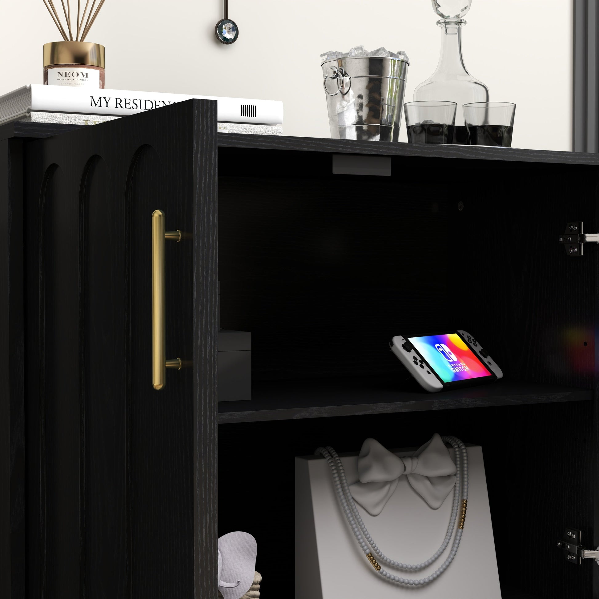 - [Vintage Fluted Design] - Elegant wood grain, smooth lines, vintage colors and metal handles combine to create a vintage and elegant look. With its exquisite and elegant appearance and outstanding storage function, it can be flexibly used as a hallway cabinet, entrance storage cabinet, file cabinet, sideboard, coffee bar cabinet, wine cabinet or living room decorative cabinet.