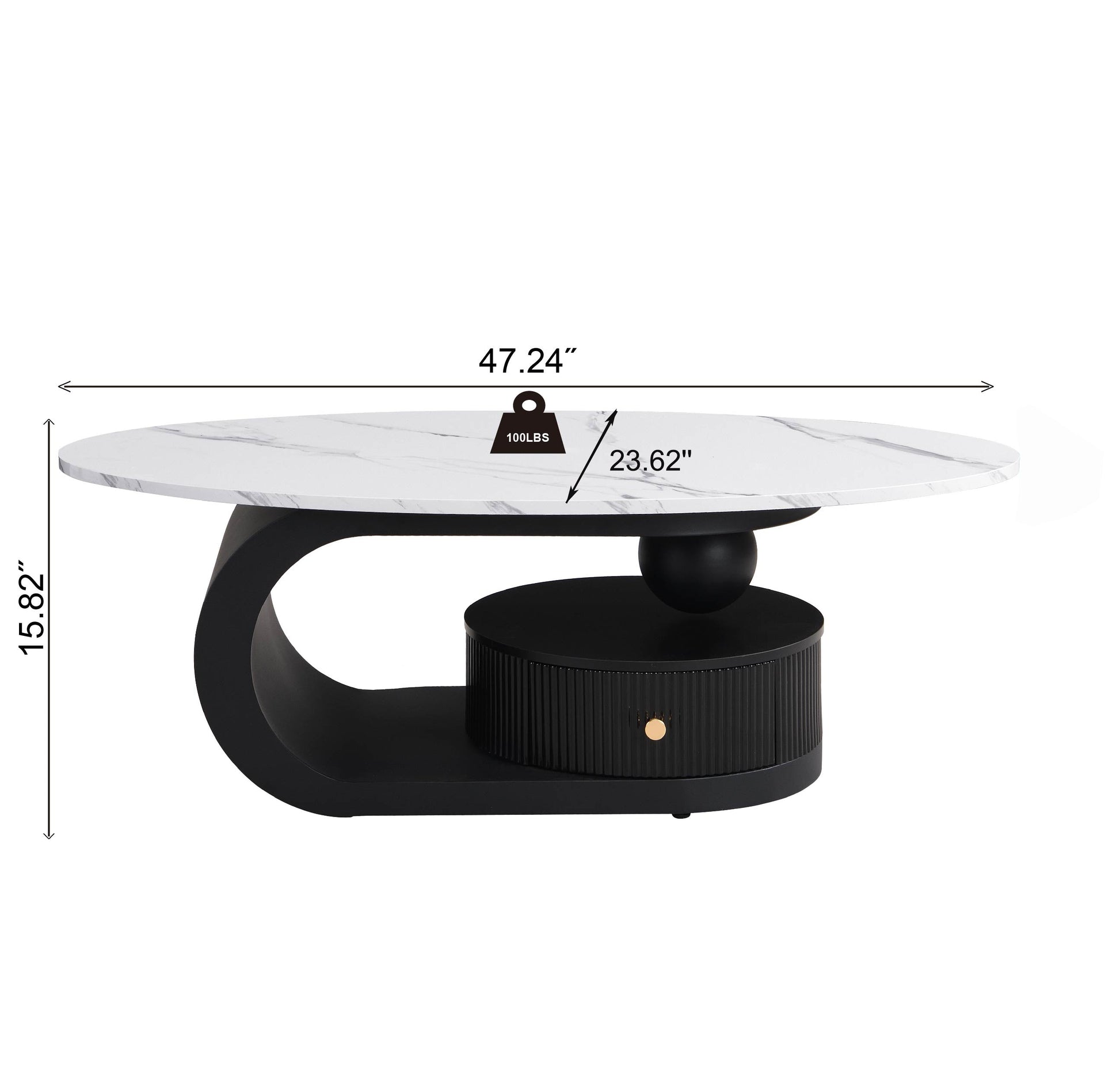 - 1. Elegant and Unique Design: Contemporary style adopts an authentic touch with the faux marble, plastic drawer and black metal frame Coffee Table and end table set. The mix of three materials ensures an extremely elegant look and will allow it to be installed in any style of interior.