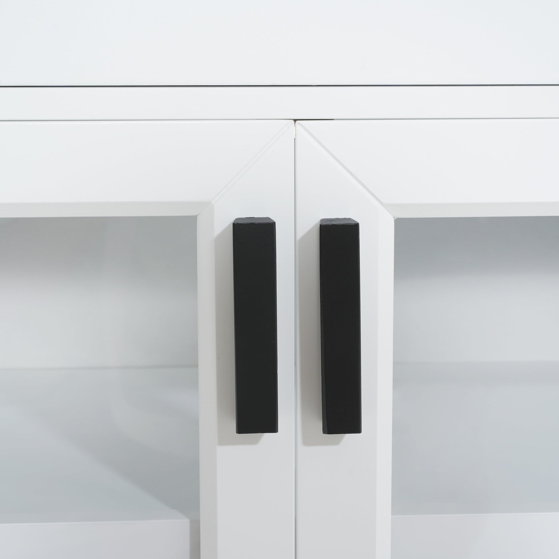 Modern White TV Console, 67' Width TV Stand, Glass Doors & Storage Drawers, Adjustable Shelves