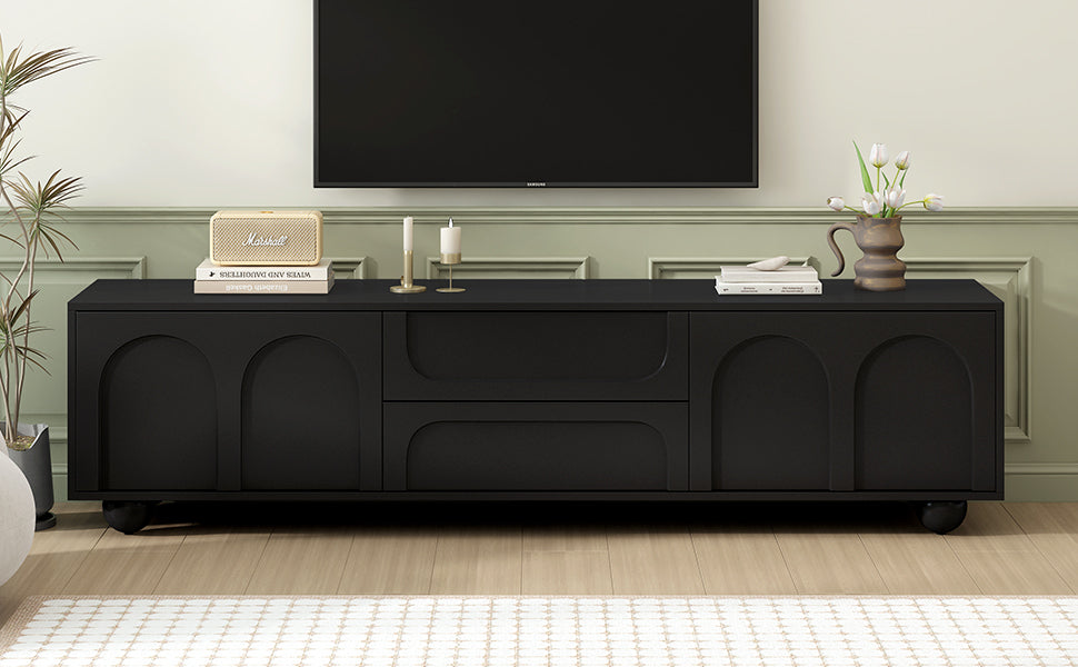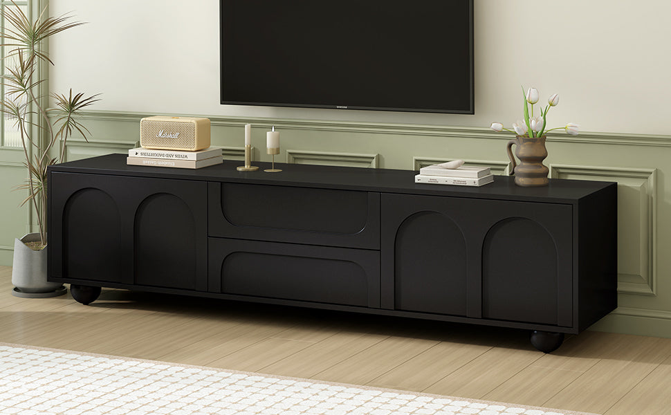 ON-TREND Cream Style TV Stand with Arched Doors & 2 Drawers for TVs up to 75', Minimalist Media Console with Rebound Device, Entertainment Center with 5 Iron Round Legs for Living Room, Bedroom, Black
