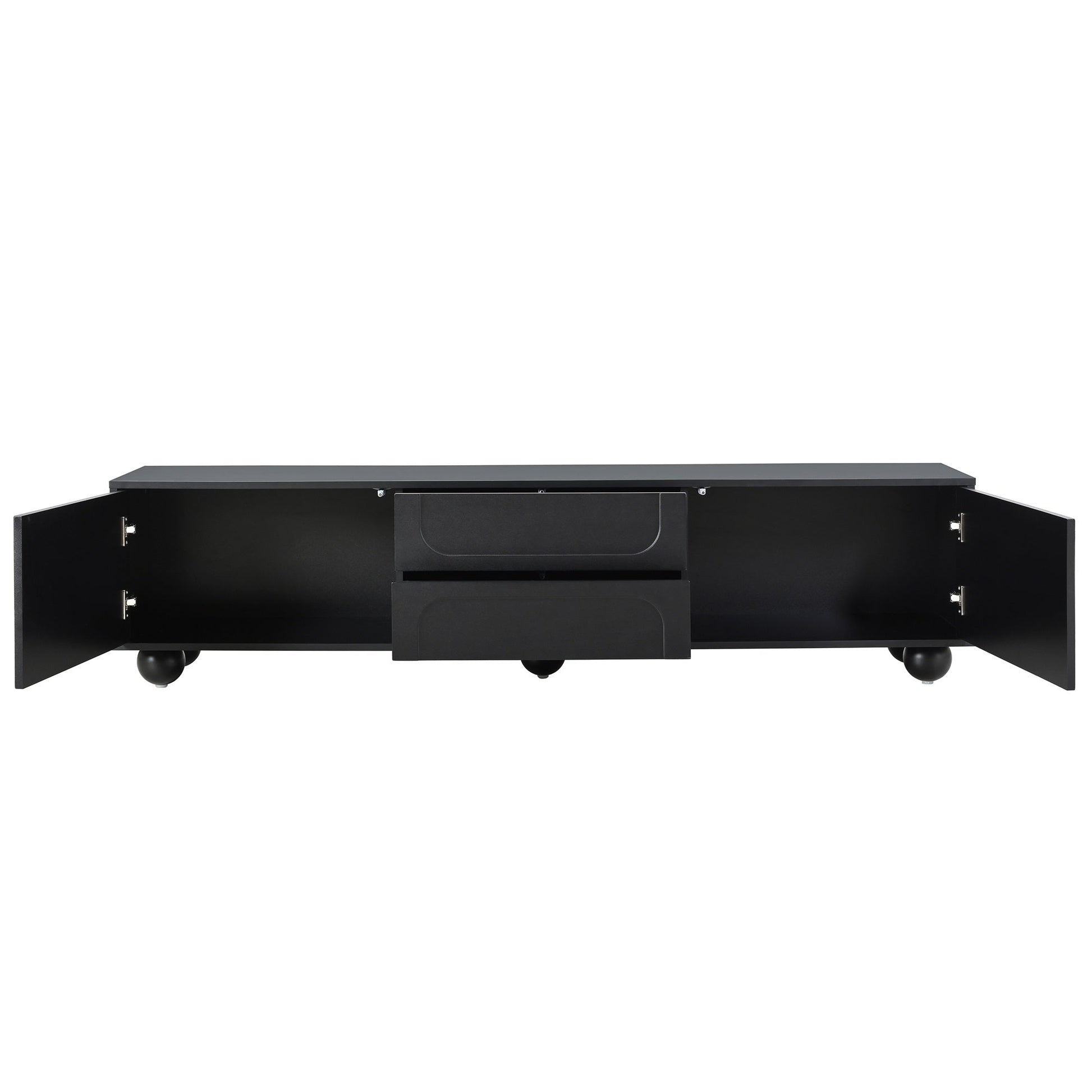 Featuring two cabinets and two drawers, this TV stand provides you with a versatile range of storage options, maximizing space utilization while maintaining a uncluttered and tidy room environment. Additionally, the spacious tabletop serves as an ideal platform for accommodating your media devices.