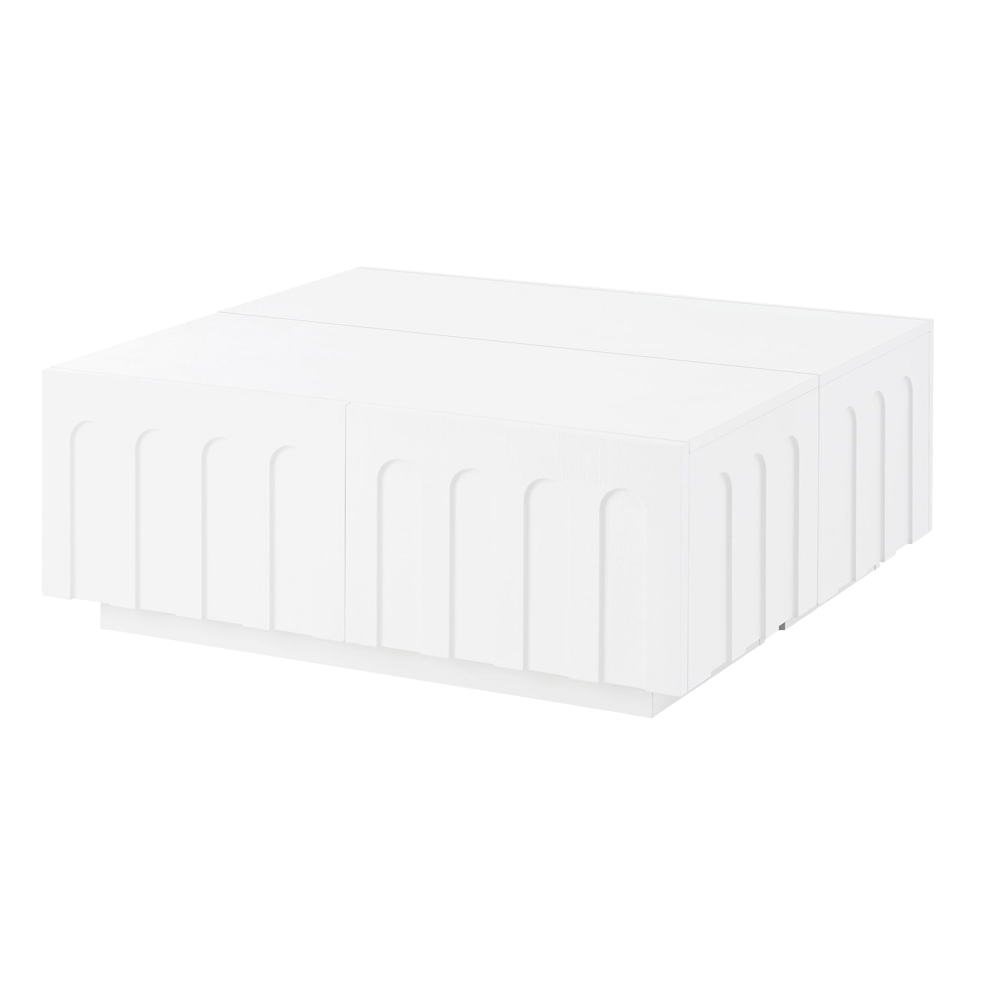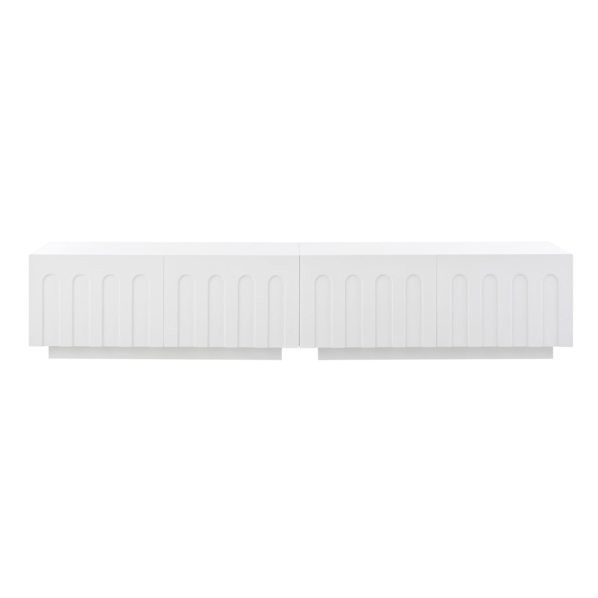 ON-TREND Elegant TV Stand with Arched Design for TVs Up to 80', Modern Dual Purpose Coffee Table with 4 Drawers, Multi-Functional Organizer Cabinet with Storage for Living Room, Bedroom, White