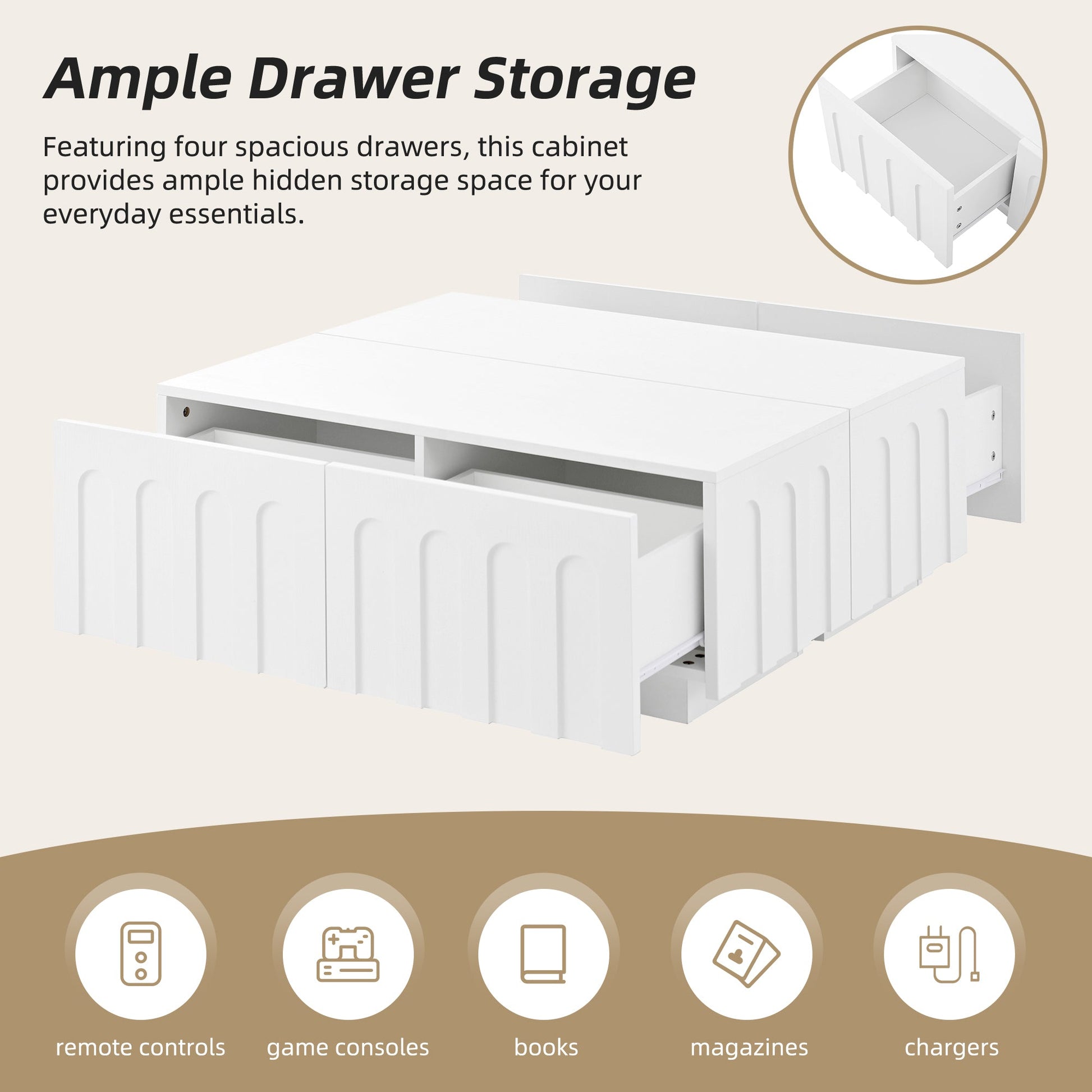 - Ample Drawer Storage: Featuring four spacious drawers, this cabinet provides ample hidden storage space for your everyday essentials. Whether you're stashing away remote controls, game consoles, books, magazines, chargers, or household accessories, these drawers help keep your living space neat and organized.