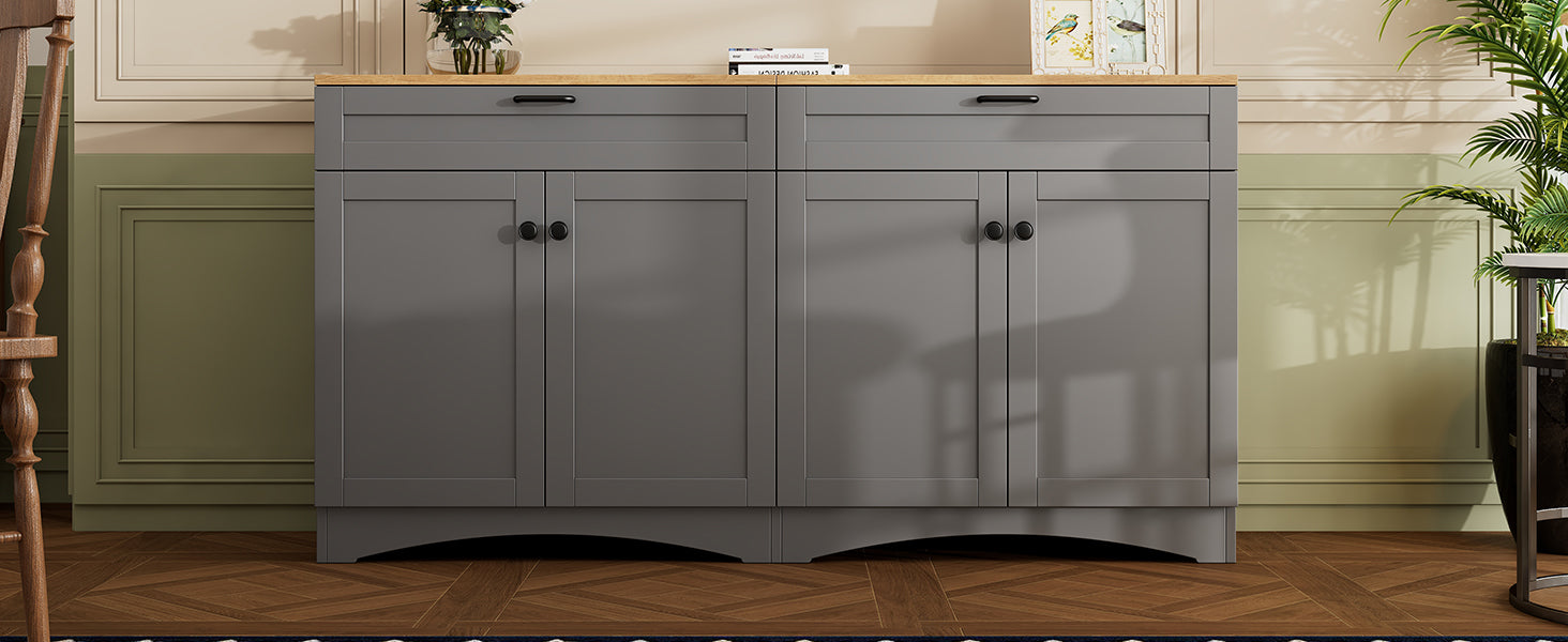 - Durable & Stable: Made of premium hardware and particle board, this farmhouse sideboard buffet has a scratch-resistant surface for long-term use. Equipped with thoughtfully foot pads and robust anti-tipping devices, this product ensures safe and secure use in your daily life, giving you peace of mind.