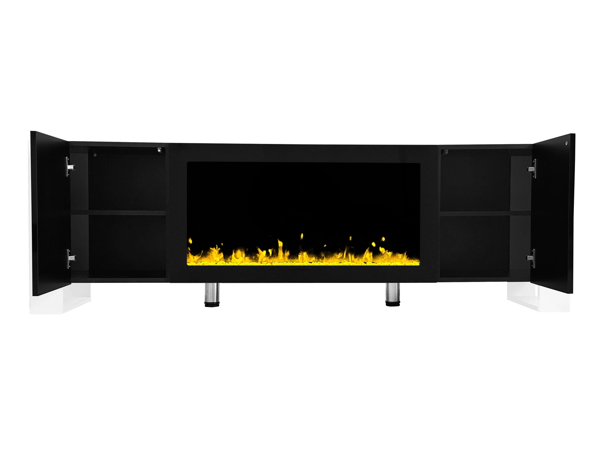 ON-TREND Modern TV Stand with 34.2' Non-heating Electric Fireplace, High Gloss Entertainment Center with 2 Cabinets, Media Console for TVs up to 78', Black