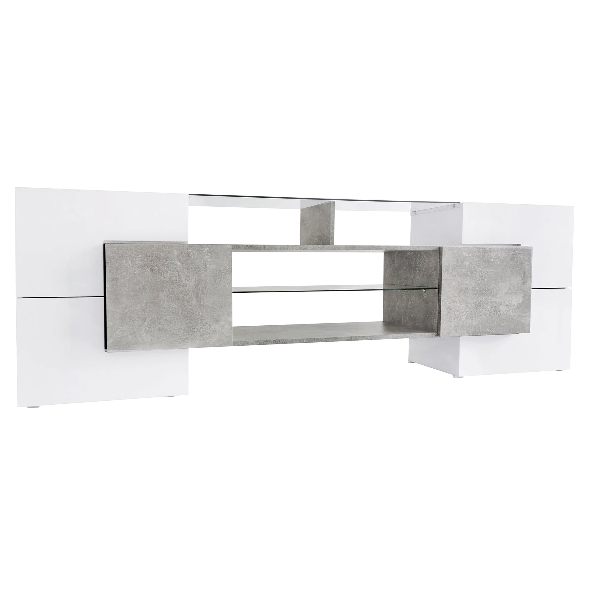 This TV stand is of distinctive design that sets it apart from ordinary cabinets. The door panel is coated with high gloss cover, giving it a glossy finish and a touch of elegance. With clean lines and a unique shape, this cabinet will complement any contemporary home.
