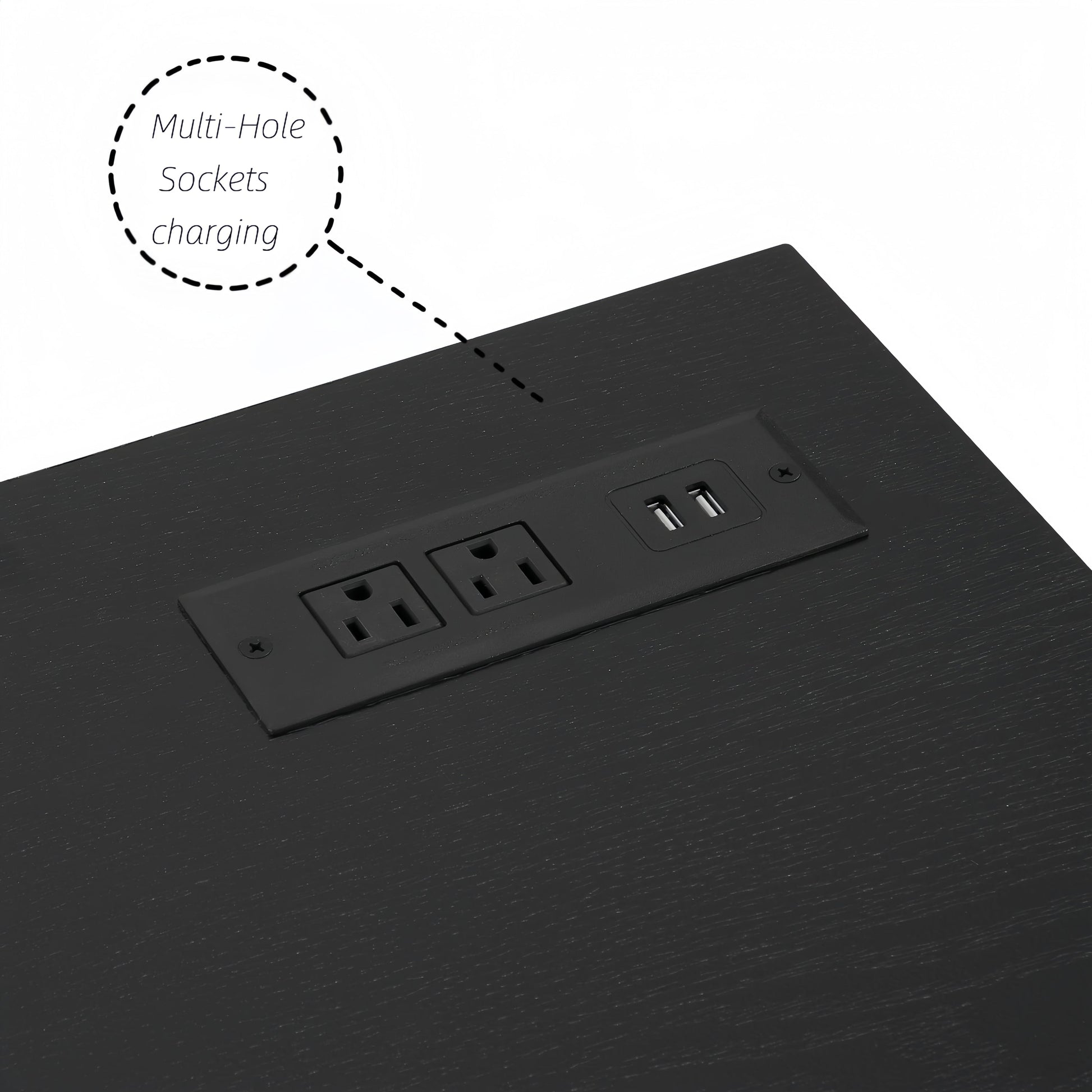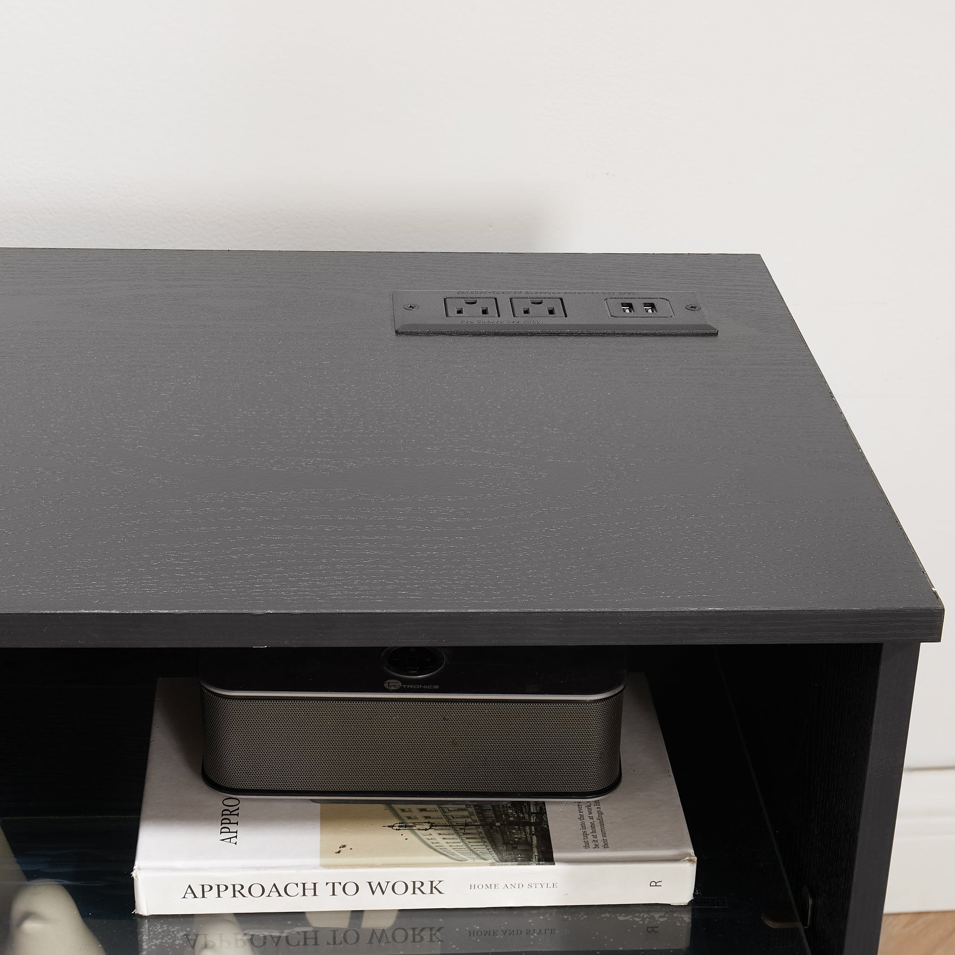 - TV Console with Power Outlets:The top of the TV cabinet provides additional sockets. 2 sockets, and 2 USB ports. The top of the entertainment center is designed with cable holes for storing additional cables. lt can maintain the overall appearance and clean liness of the environment.