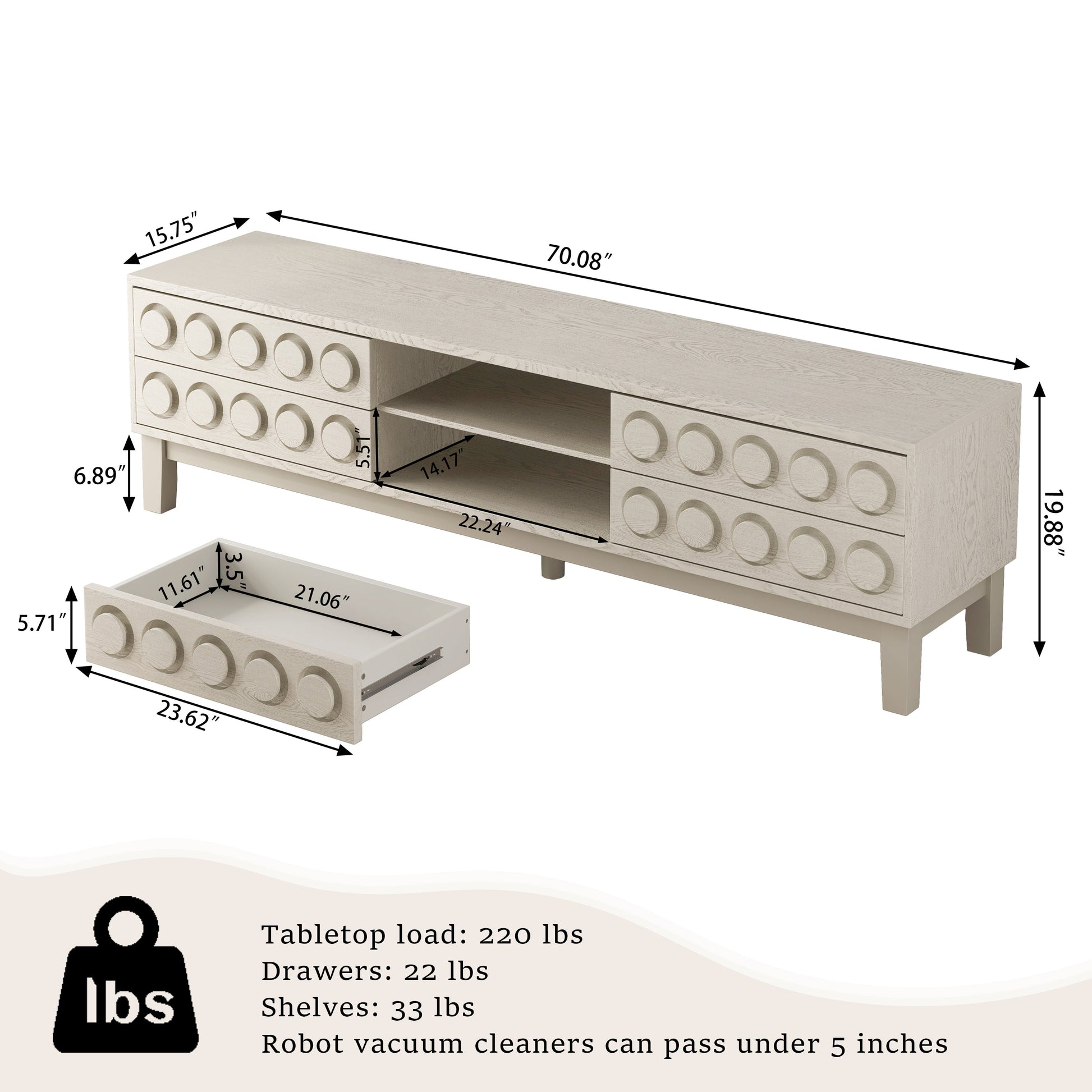 TV Stand for TVs up to 75', Media Console with 4 Drawers, Entertainment Center with Storage for Living Room and Bedroom(White)