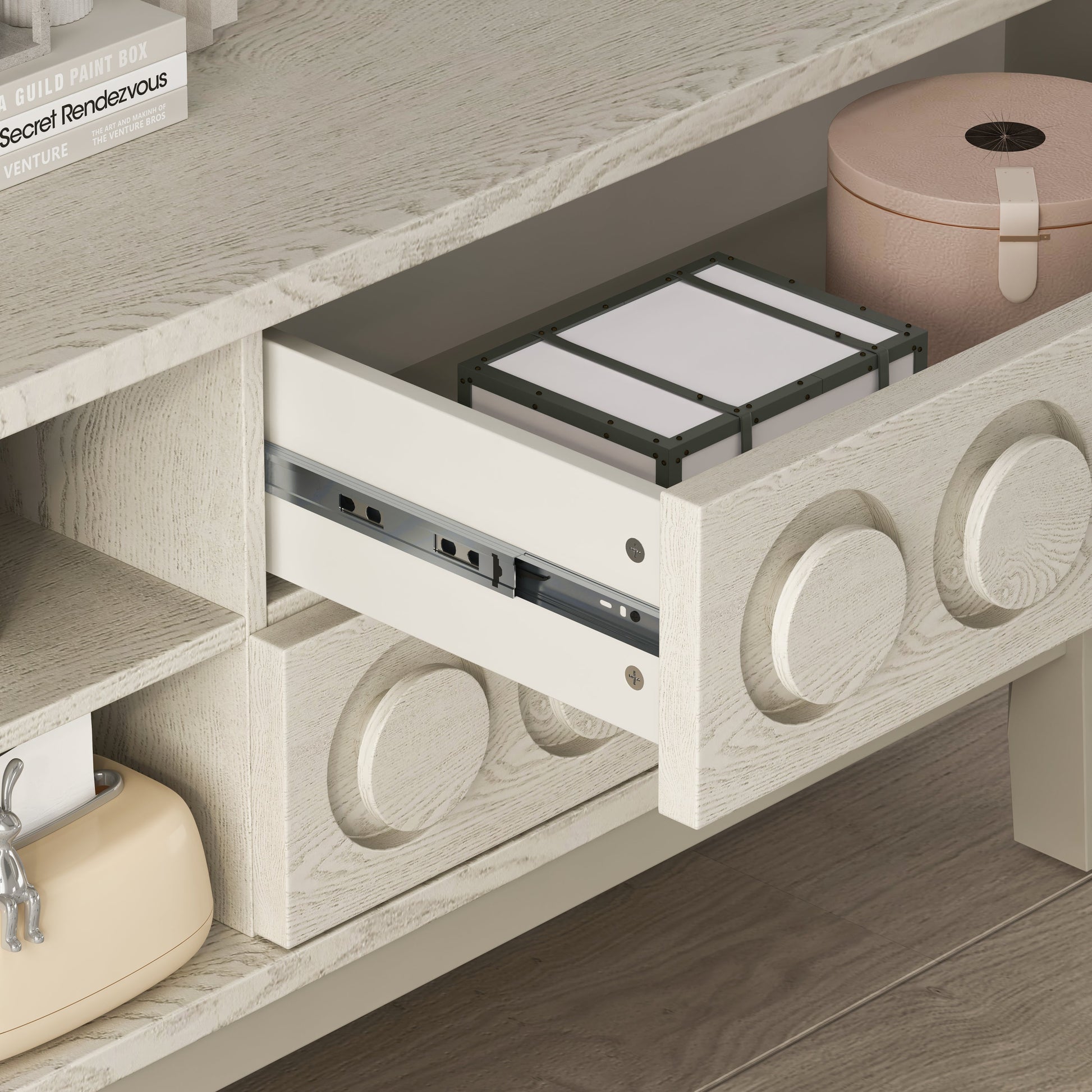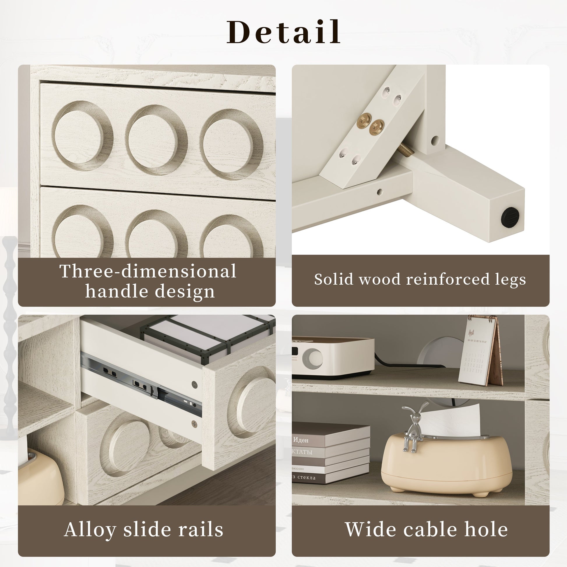 - 【Unique Design of Media Console】This TV stand with storage and drawer fronts features a 3-D design, adding endless energy and creativity to your living room space. It is an ideal entertainment center for your family and a great decoration for your living room, bedroom, home office or lounge.