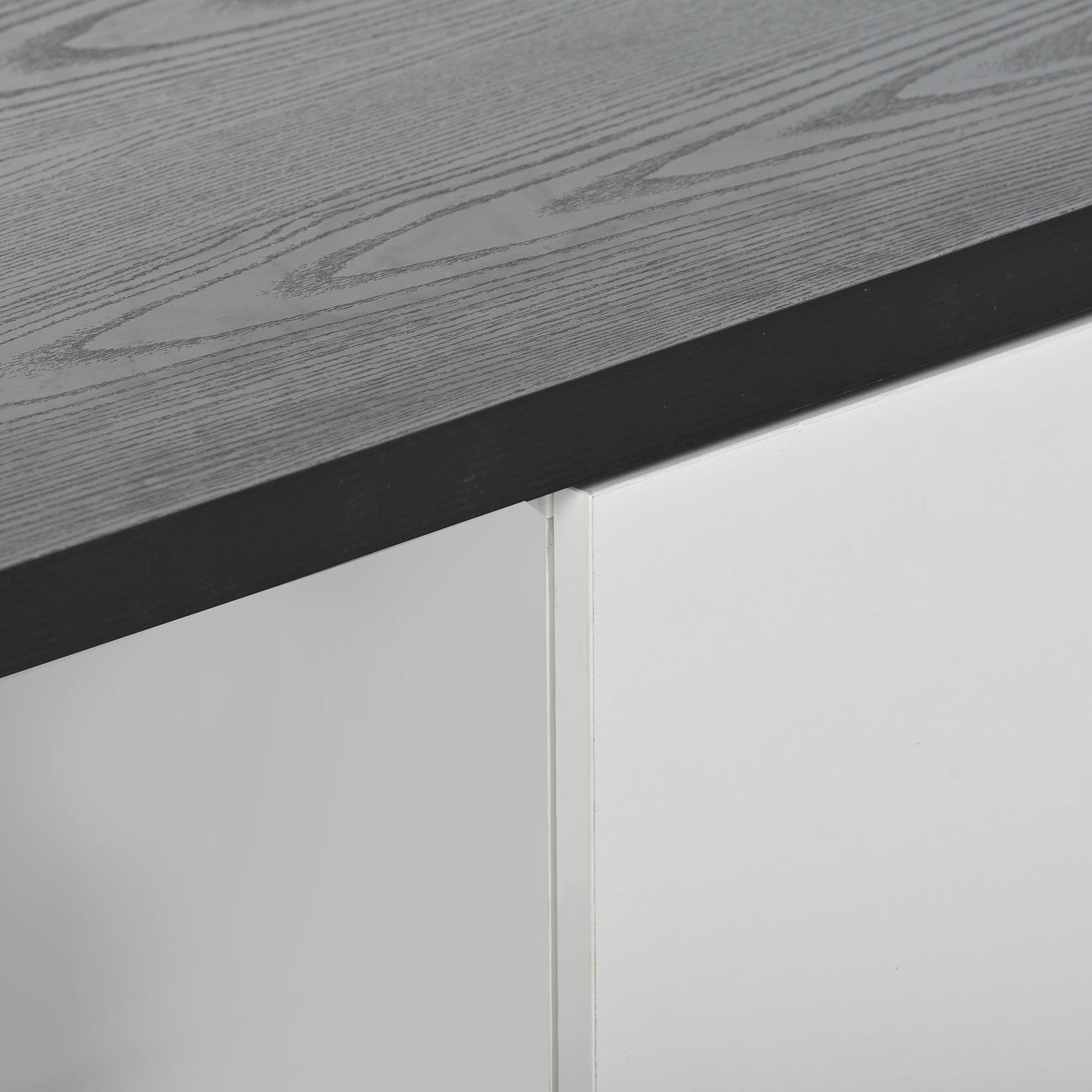 This TV stand brings elegance and modernity to your living room. Particle board with a clean-lined silhouette in black & white lacquered hue fits into your existing arrangement easily. Designed with a smooth and wear-resistant tabletop, this functional TV stand provides plenty of space for the TV screen and decorative accents, while it features 3 large drawers for internal storage. And offers extra and flexible storage space. Stylish, functional, and high-quality, this TV stand is a wise choice for your home furnishings needs.