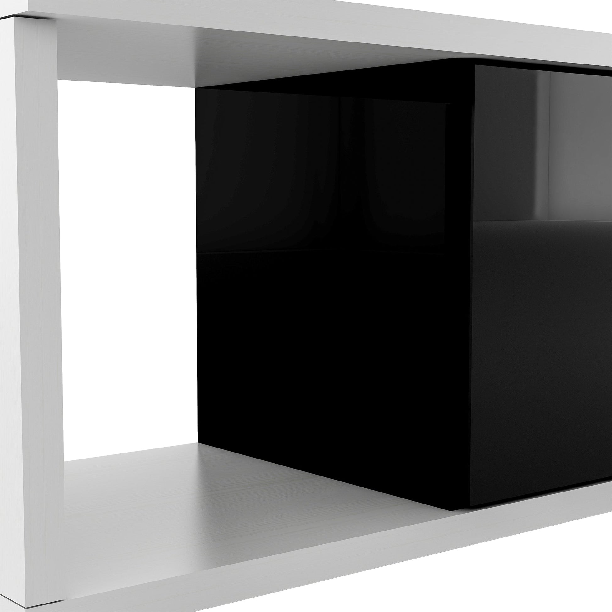 This TV stand brings elegance and modernity to your living room. Particle board with a clean-lined silhouette in black & white lacquered hue fits into your existing arrangement easily. Designed with a smooth and wear-resistant tabletop, this functional TV stand provides plenty of space for the TV screen and decorative accents, while it features 3 large drawers for internal storage. And offers extra and flexible storage space. Stylish, functional, and high-quality, this TV stand is a wise choice for your home furnishings needs.