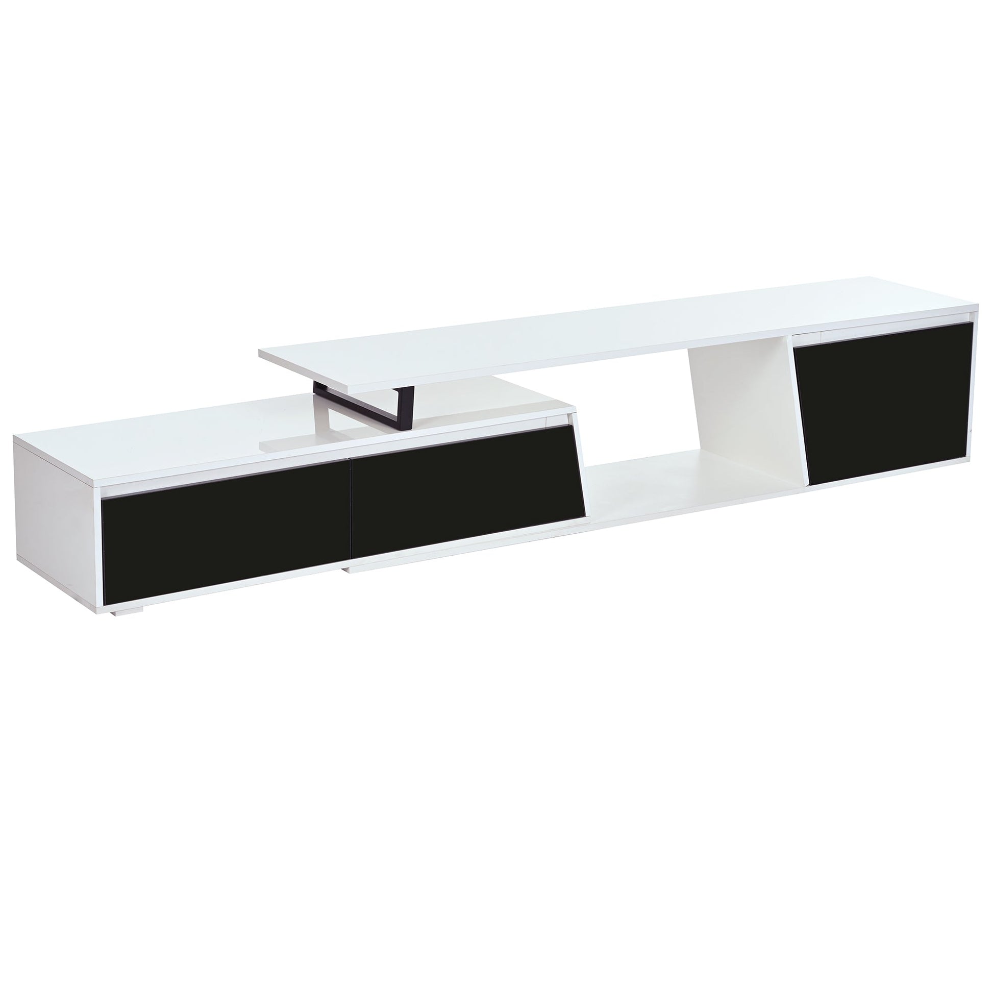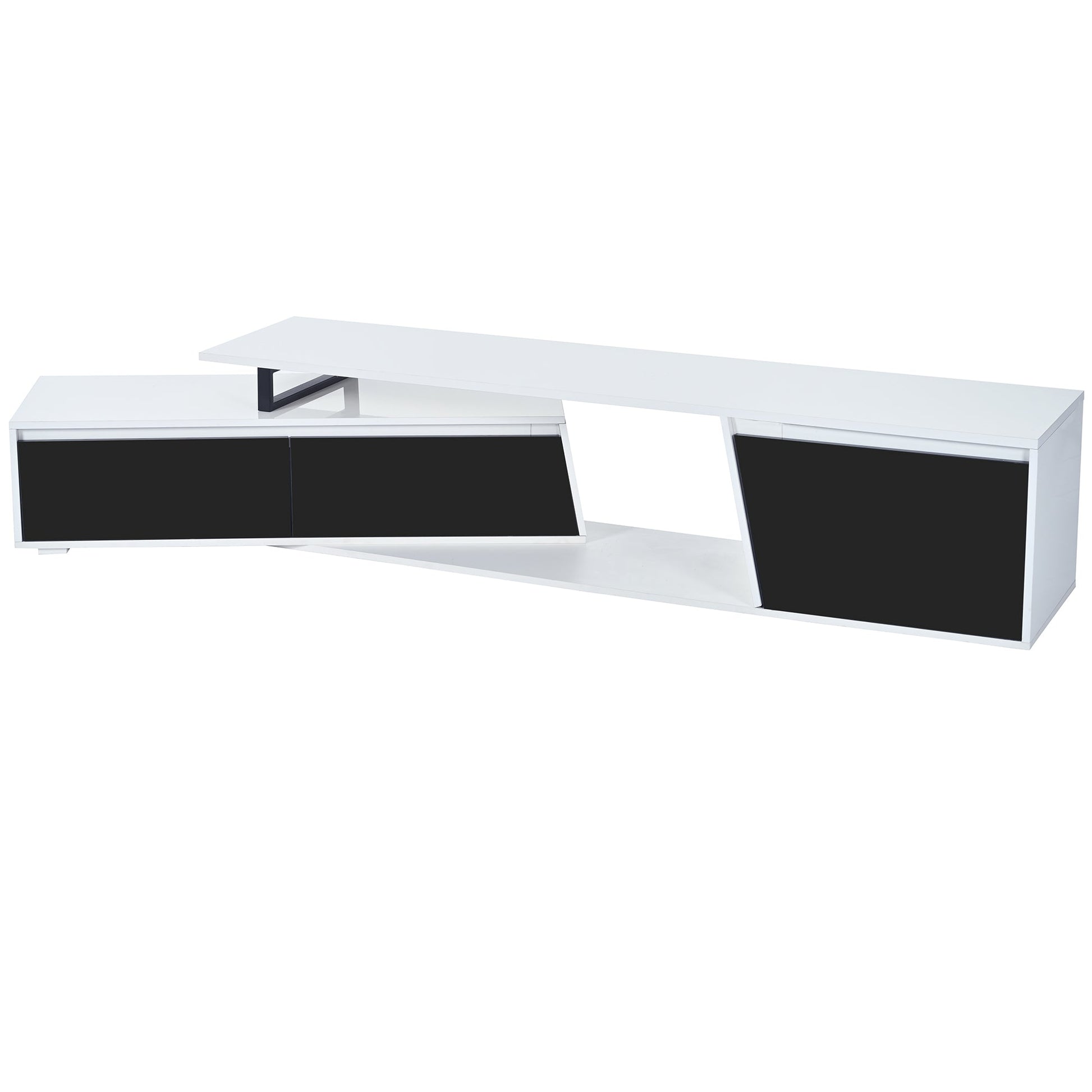 Inspired by the art of asymmetrical, this extendable contemporary TV stand is is definitely a highlight of your living room. It features two ample drawers and one cabinet to keep DVDs, magazines, blankets, toys or other essentials tidy. Made of high-quality particle board with high-glossy surface, this stylish TV is the perfect choice for your living room and bedroom. Can accommodate up to an 100-inch TV.