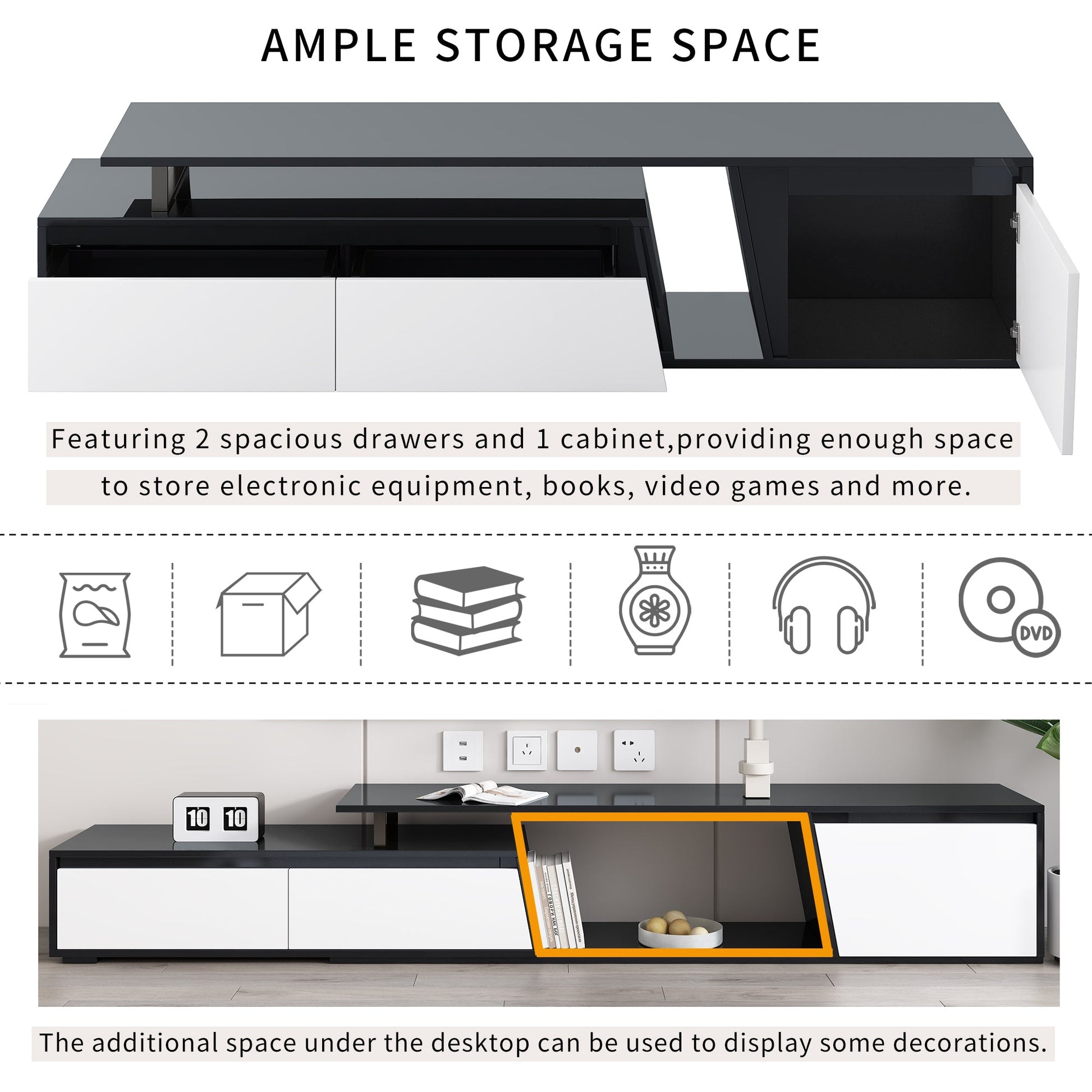 U-Can Modern, Minimalist Rectangle Extendable TV Stand, TV Cabinet with 2 Drawers and 1 Cabinet for Living Room, Up to 100''