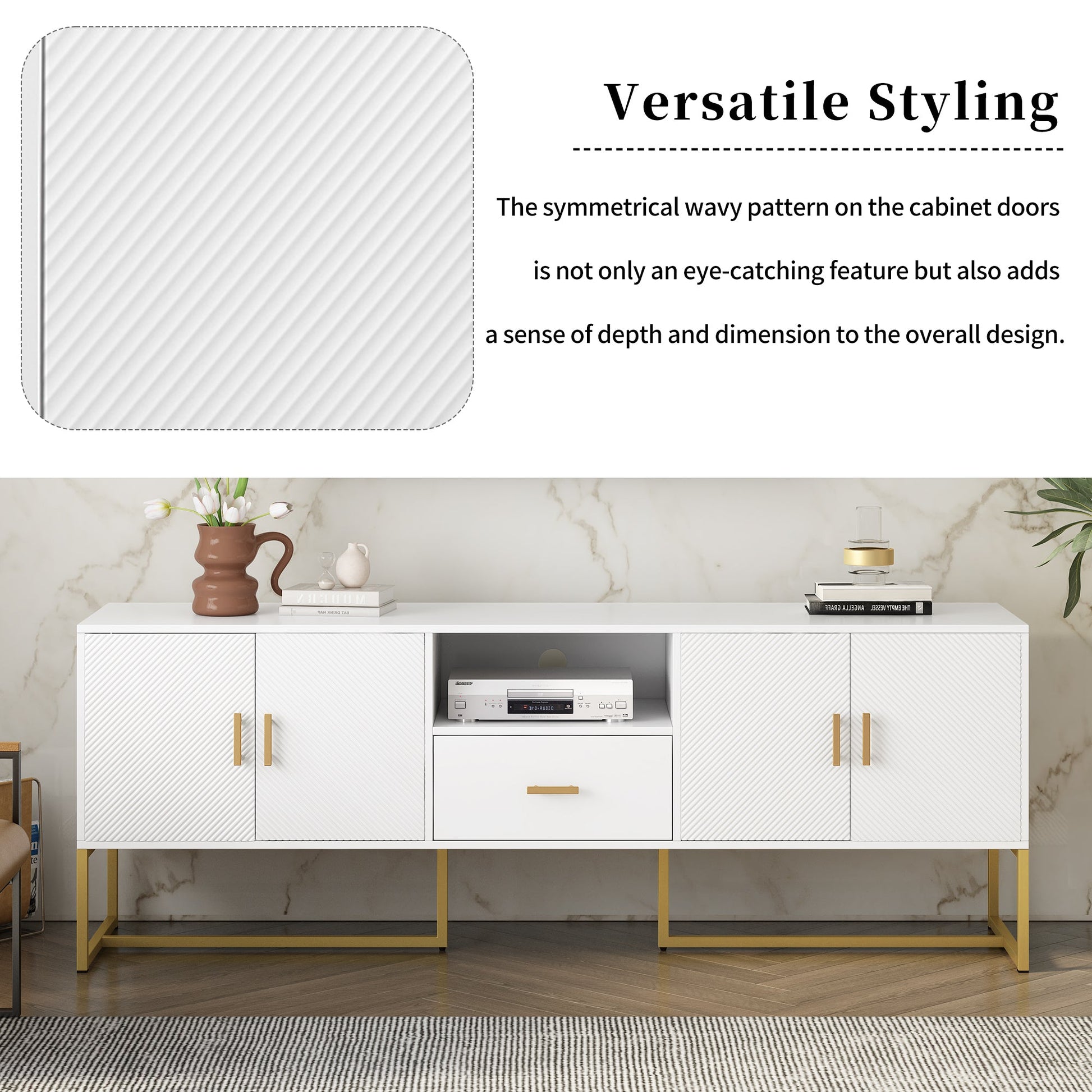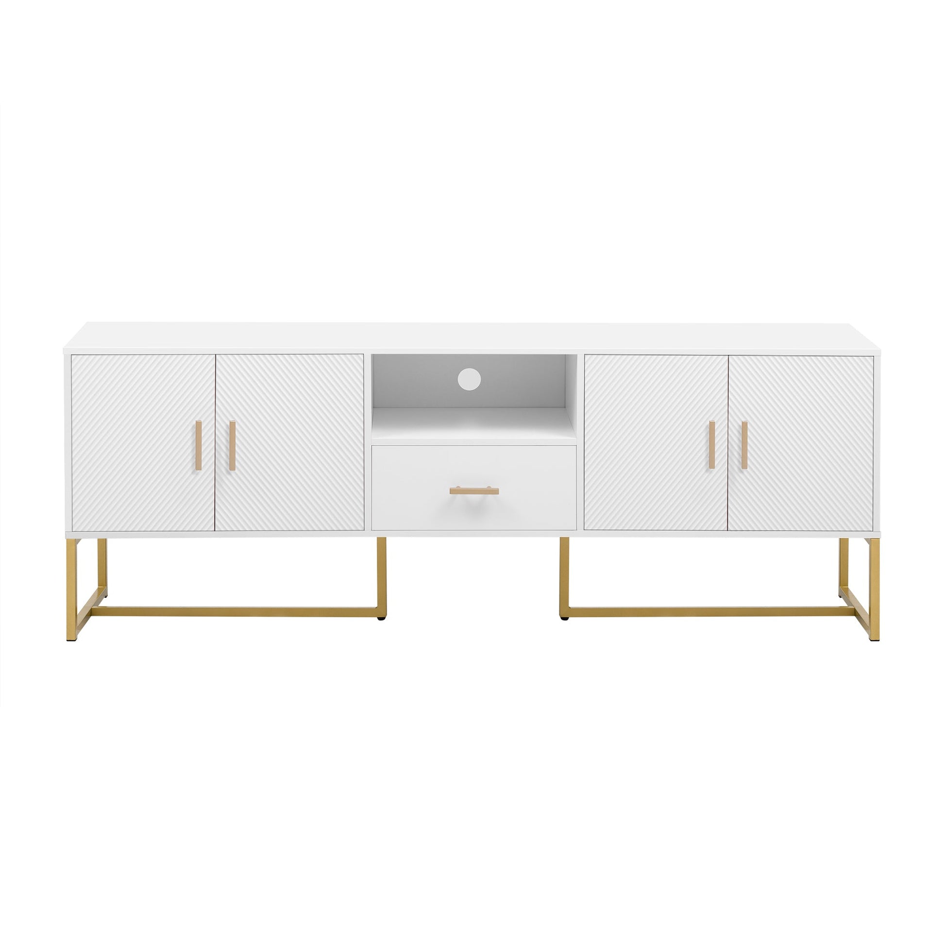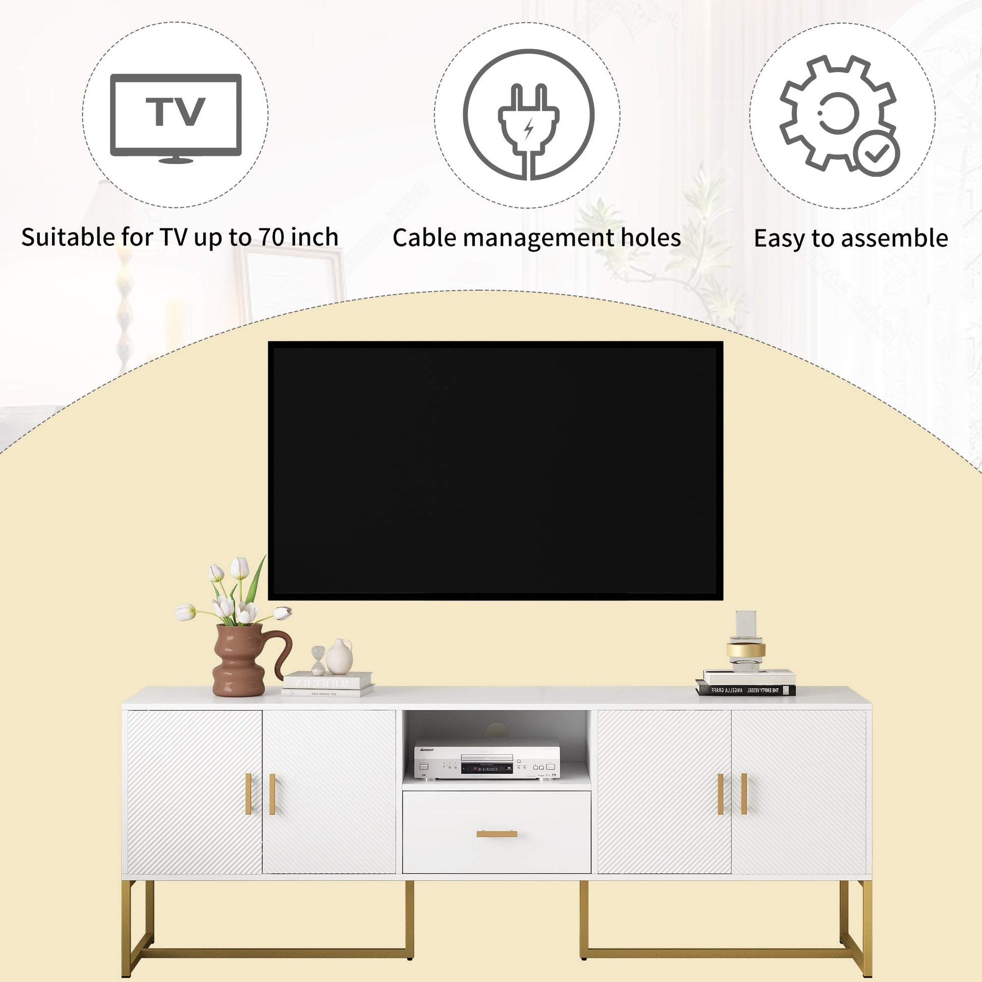 U-Can Modern TV Stand for TV up to 70 Inches,TV Cabinet with 1 Drawer, 2 Cabinets and Metal Legs, Handles and Anti-tip Device for Living room