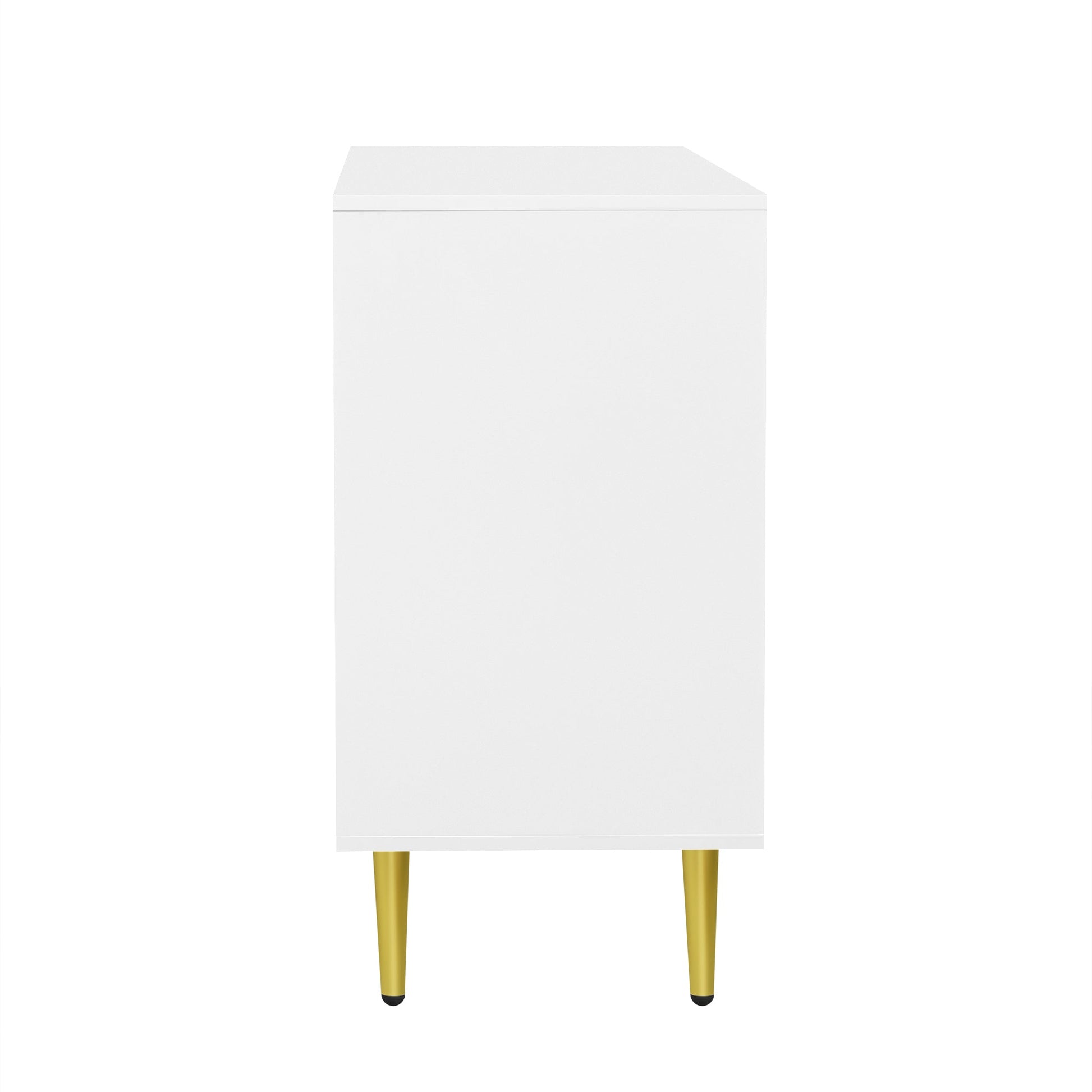 - Crafted from sturdy and durable golden metal, the legs of this TV stand ensure stable support for your television and media equipment. The metallic finish imbues the design with a luxurious texture, elevating the sophistication of your home decor. The unique middle partition design can be used as a display area for decoration and as a layered storage solution, improving space utilization and combining practicality and aesthetics.