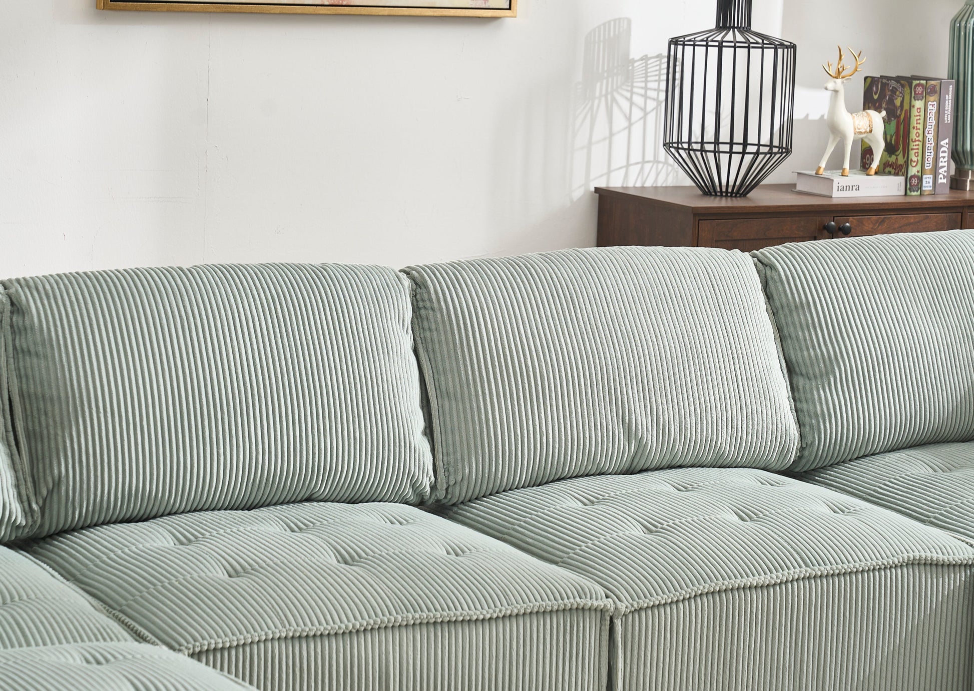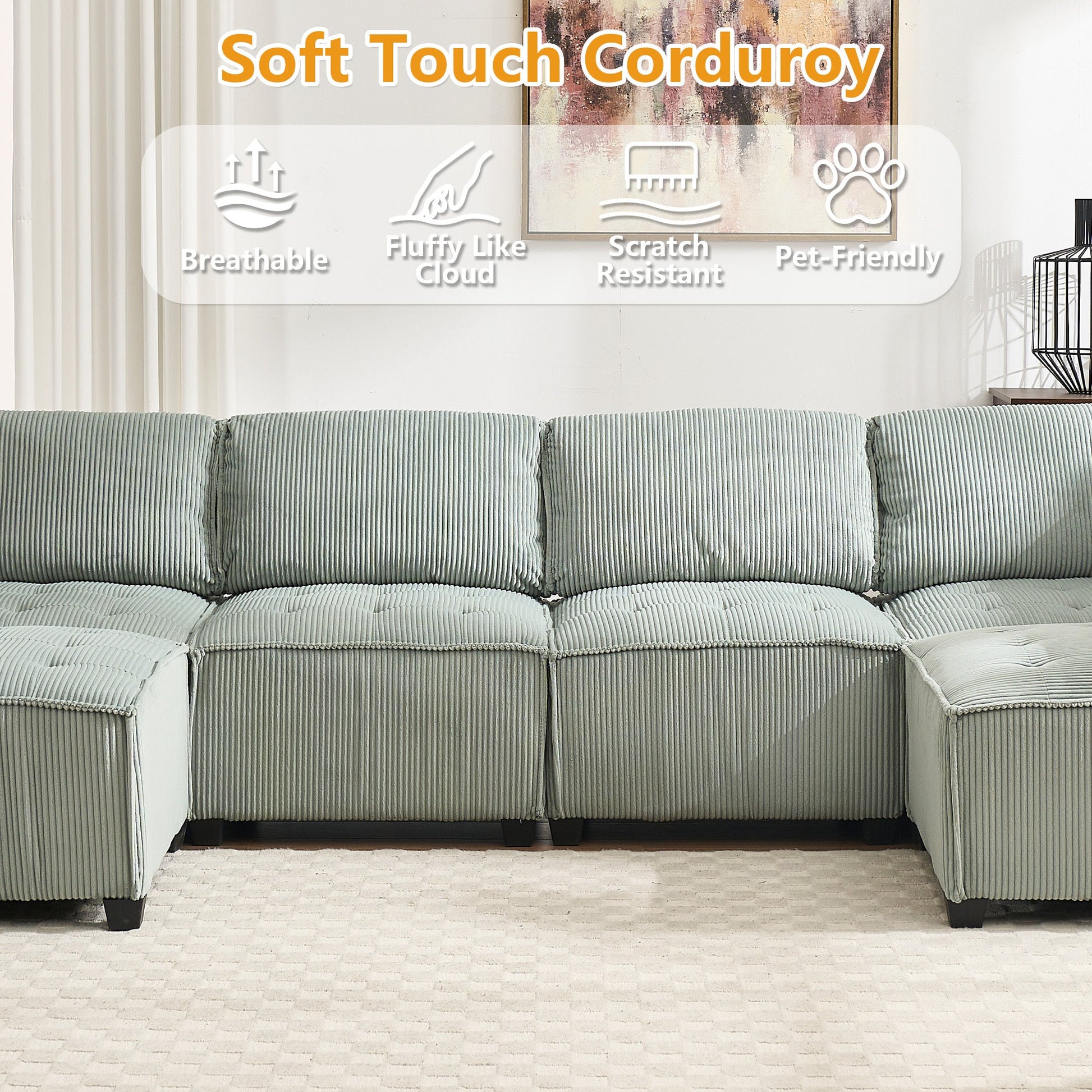 - Luxurious, Wrinkle-Resistant Corduroy - Wrapped in premium, wrinkle-resistant corduroy, this modular sectional couch combines soft, luxurious comfort with durability. The fabric feels smooth to the touch and resists wear, keeping your sofa looking and feeling fresh over time.