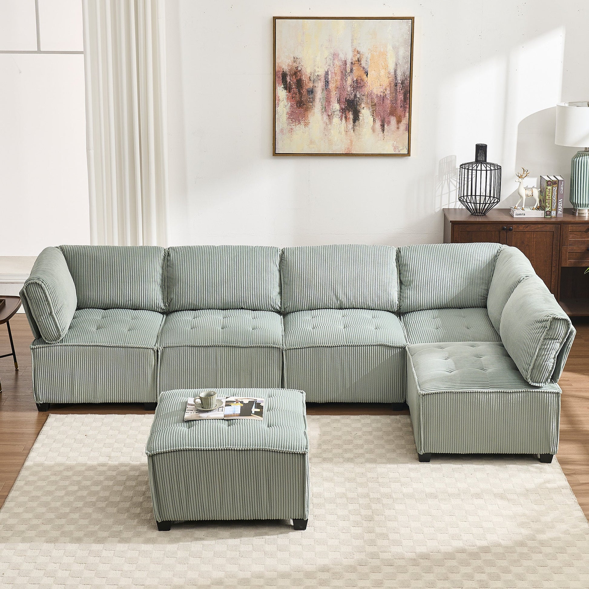 - Adaptable Modular Design: Redefine your living space with our 6-piece modular sectional sofa; Arrange it to suit any room layout or furniture arrangement, transforming it into a cozy sofa bed, L-shaped, or U-shaped sofa; Its chic design and colors elevate your interior decor
