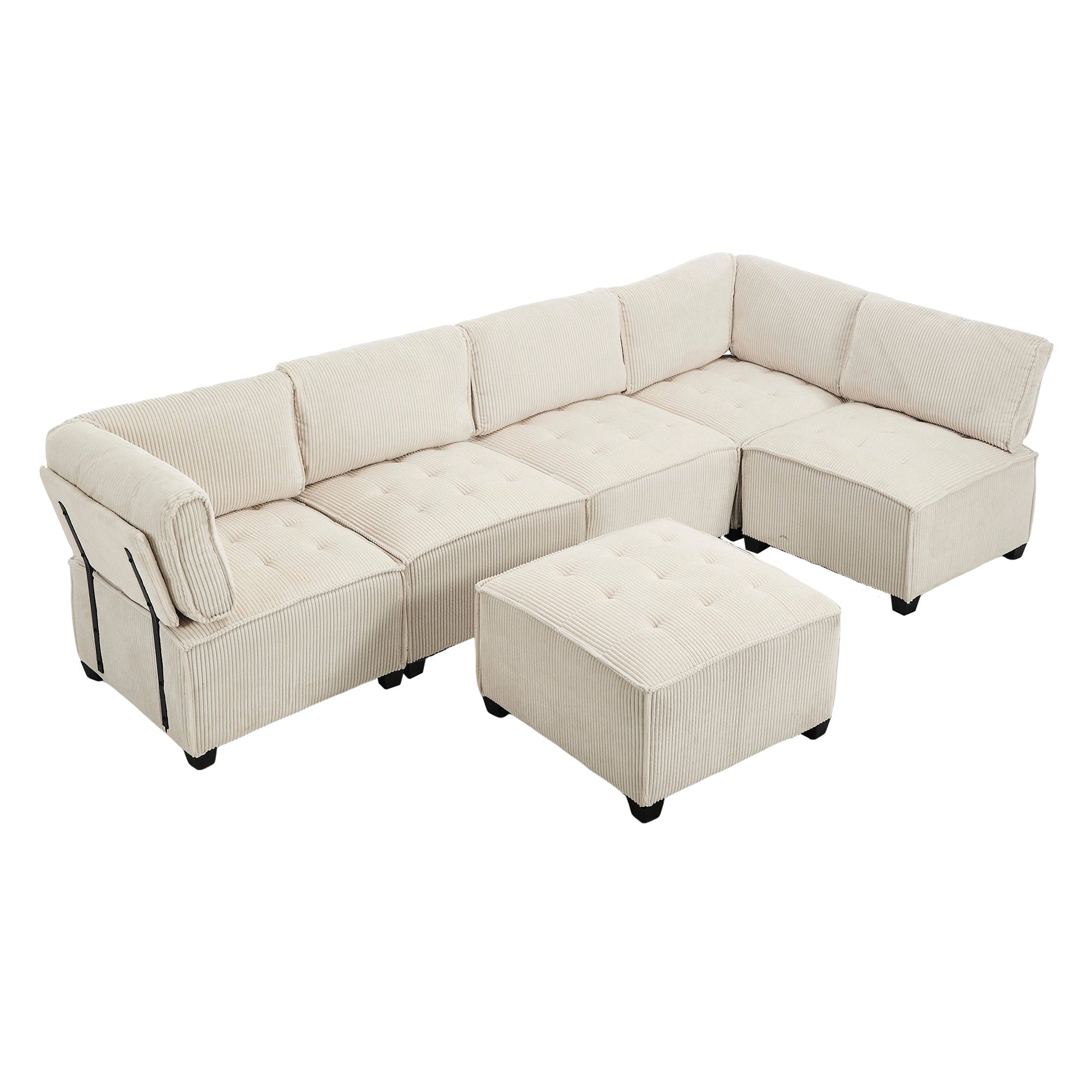 - Adaptable Modular Design: Redefine your living space with our 6-piece modular sectional sofa; Arrange it to suit any room layout or furniture arrangement, transforming it into a cozy sofa bed, L-shaped, or U-shaped sofa; Its chic design and colors elevate your interior decor
