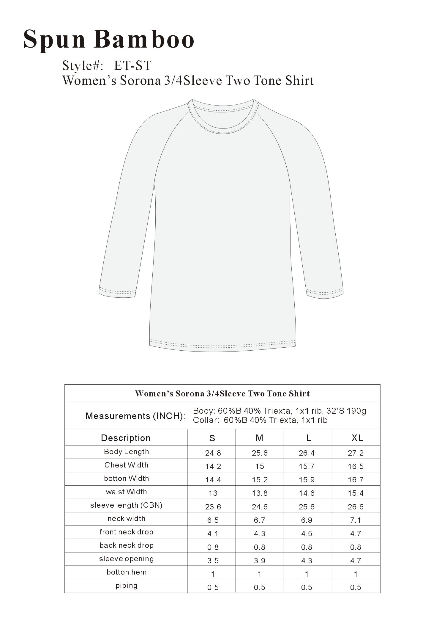 Women's Bamboo Viscose/Sorona 3/4 Sleeve T-Shirt