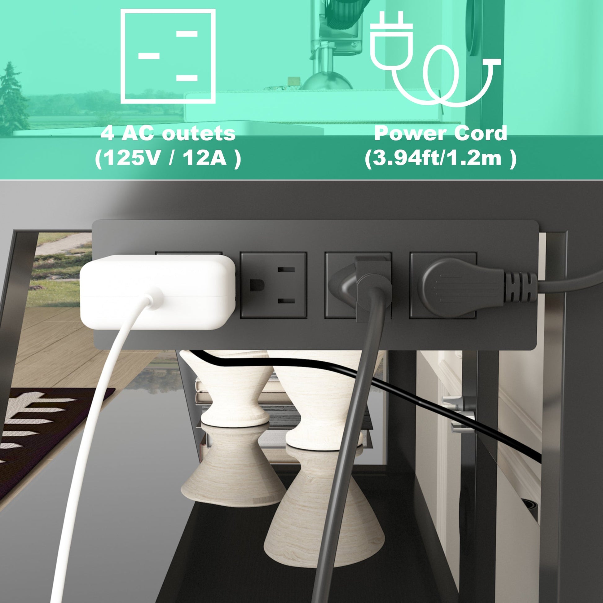 - MULTI-FUNCTIONAL DESIGN - In addition to supporting a TV, this stand includes a power socket with four outlets, providing convenience for charging various electronic devices such as mobile phones, audio equipment, or laptops.