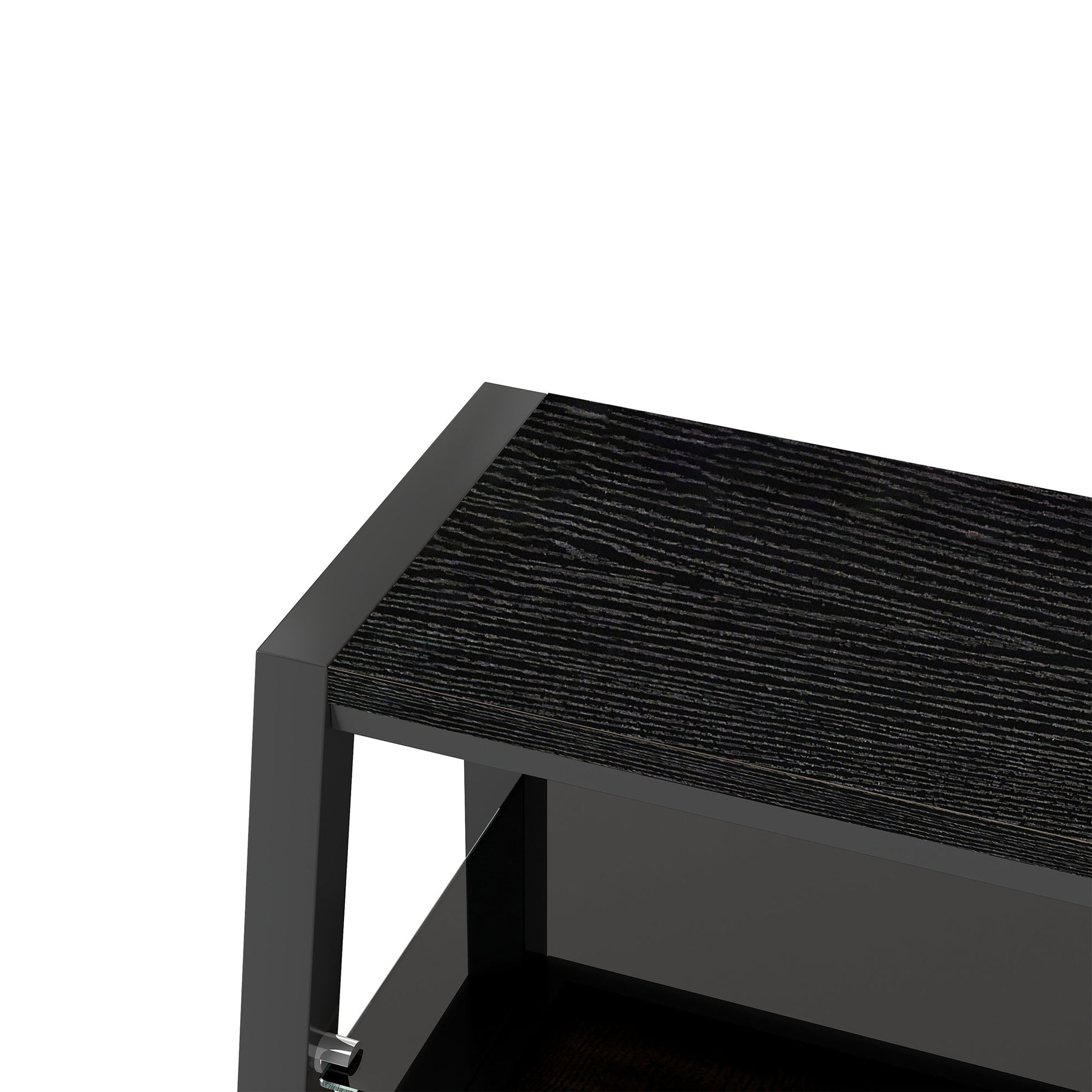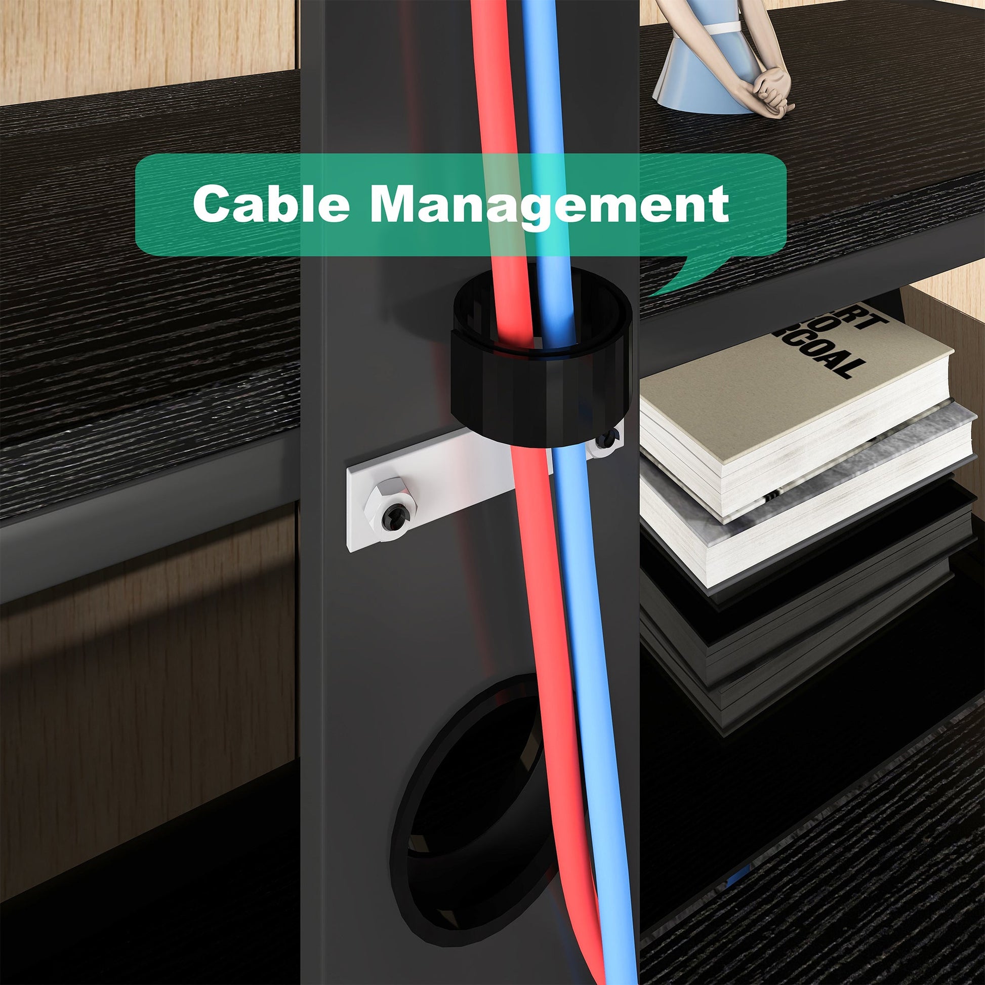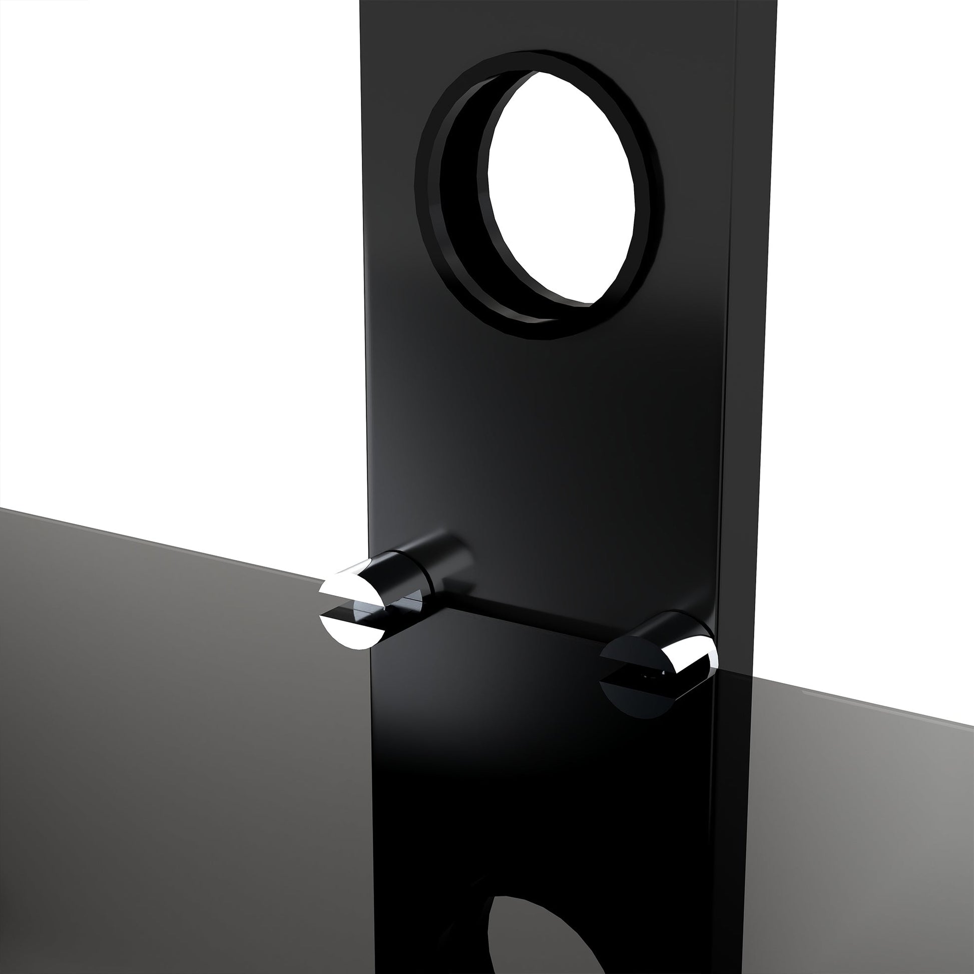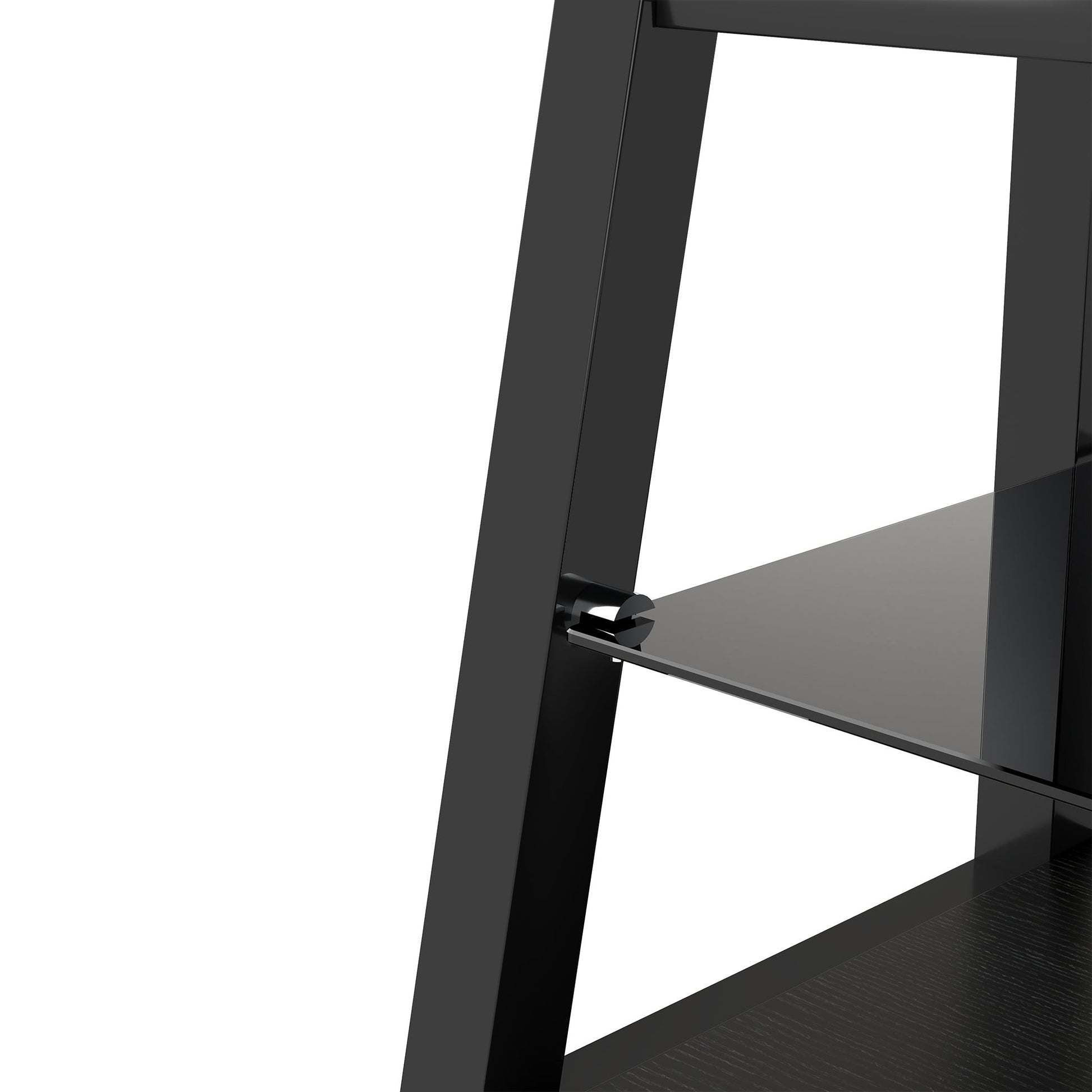 - MDF & TEMPERED GLASS - Featuring black tempered glass, the shelf has a load capacity of 180 lbs, 33 lbs for the middle shelf, and 180 lbs for the mount. The back is constructed with a 100x20 mm metal tube for added stability.