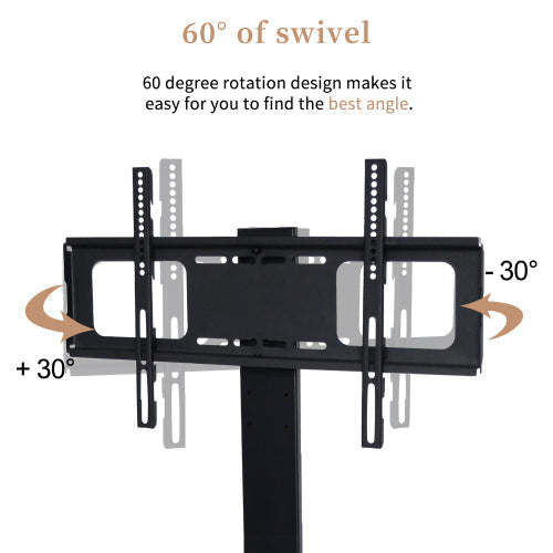 Wooden Storage TV Stand Black Tempered Glass Height Adjustable Universal Swivel Entertainment Center With Mount TV Stand,black